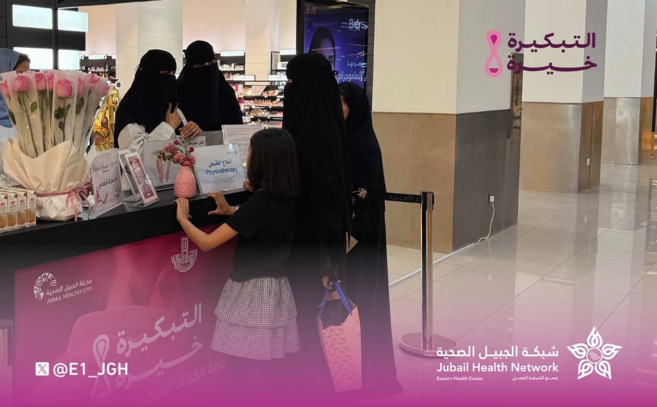 فعلت #شبكة_الجبيل_الصحية أحد مكوّنات #تجمع_الشرقية_الصحي بالتعاون مع #بلدية_الجبيل أركانًا توعوية وتثقيفية ضمن حملة الكشف المبكر عن سرطان الثدي في #الجبيل_مول.