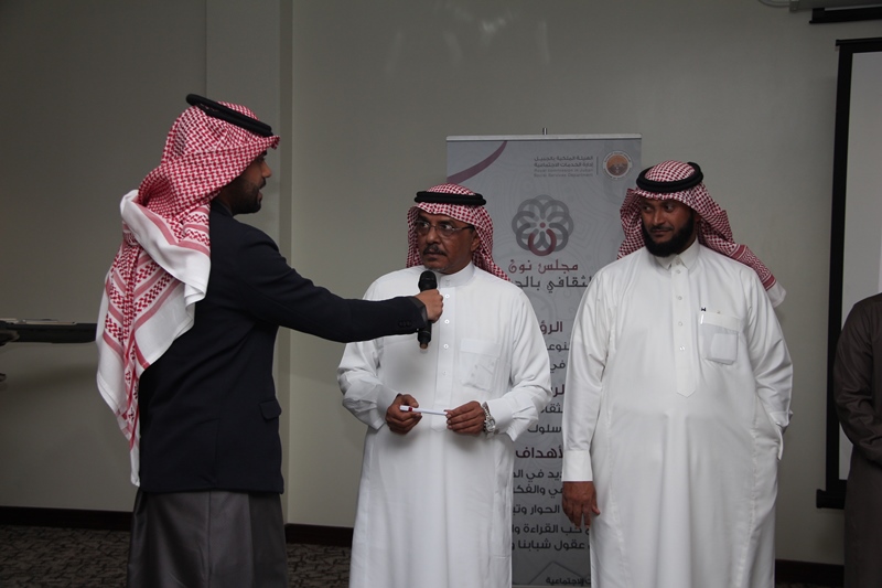 بحضور أ. راشد القحطاني و أ . عيد الدوسري مدير الأنشطة الثقافية ومدير مجلس الأنشطة الثقافية بفرع الأحساء أقام مساء أمس مجلس نون الثقافي في نادي البحري الواقع في دارين بمحافظة الجبيل حفل إفتتاح الفرع الثاني بالجبيل الصناعية بعد أفتتاح الفرع الرئيسي بمحافظة الأحساء .