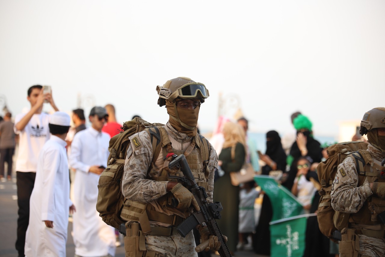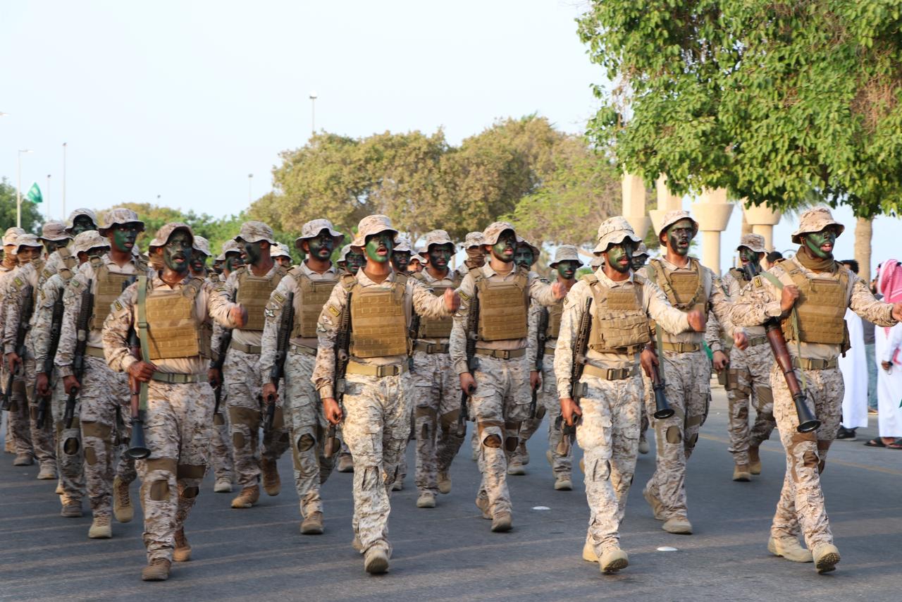 انطلقت مسيرات المشاة والآليات التابعة للقوات البحرية في الجبيل، على شاطئ الفناتير بمدينة الجبيل الصناعية، ضمن فعاليات احتفاء المحافظة باليوم الوطني الـ95 للمملكة.