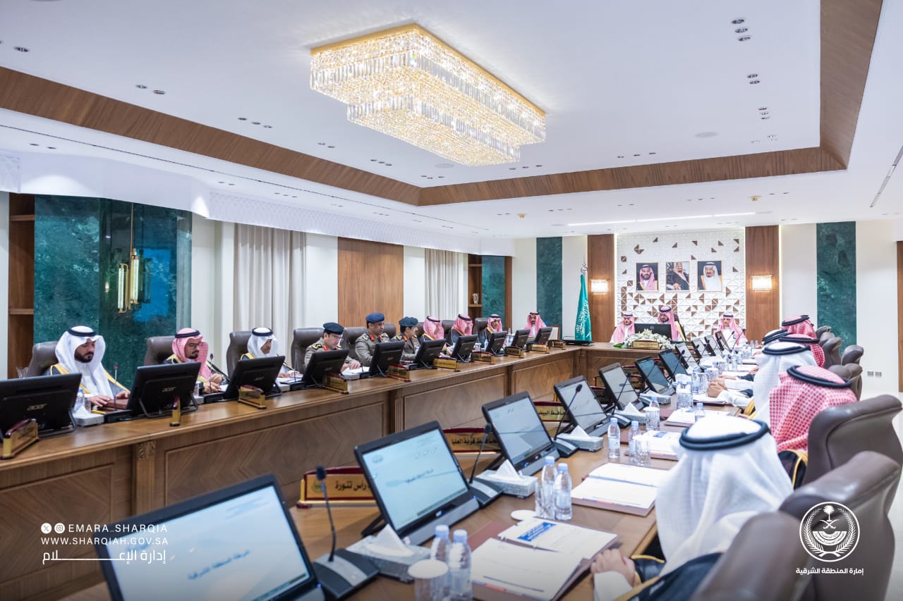 واستعرض مدير شرطة المنطقة خلال الاجتماع التقرير الأمني وما تضمنه من بيانات إحصائية عن القضايا الأمنية والجنائية، فيما قدم مدير الدفاع المدني بالمنطقة تقريرًا عن الإجراءات المتخذة لتقليل المخاطر والحالات الطارئة، كما قدم مدير مرور المنطقة تقريرًا عن الحالة المرورية وإحصائيات عن الحوادث والخطط المرورية في المنطقة.