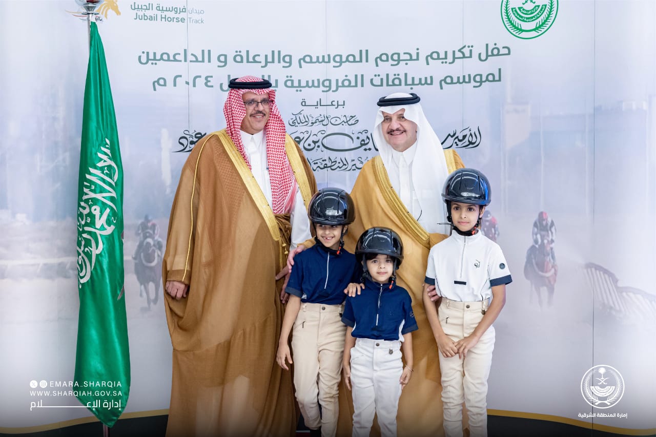 رعى صاحب السمو الملكي الأمير سعود بن نايف بن عبدالعزيز أمير المنطقة الشرقية، بديوان الإمارة اليوم، حفل ختام موسم سباقات ميدان فروسية الجبيل لعام (2024م)، بحضور محافظ الجبيل رئيس مجلس إدارة ميدان فروسية المحافظة منصور بن زيد الداود.