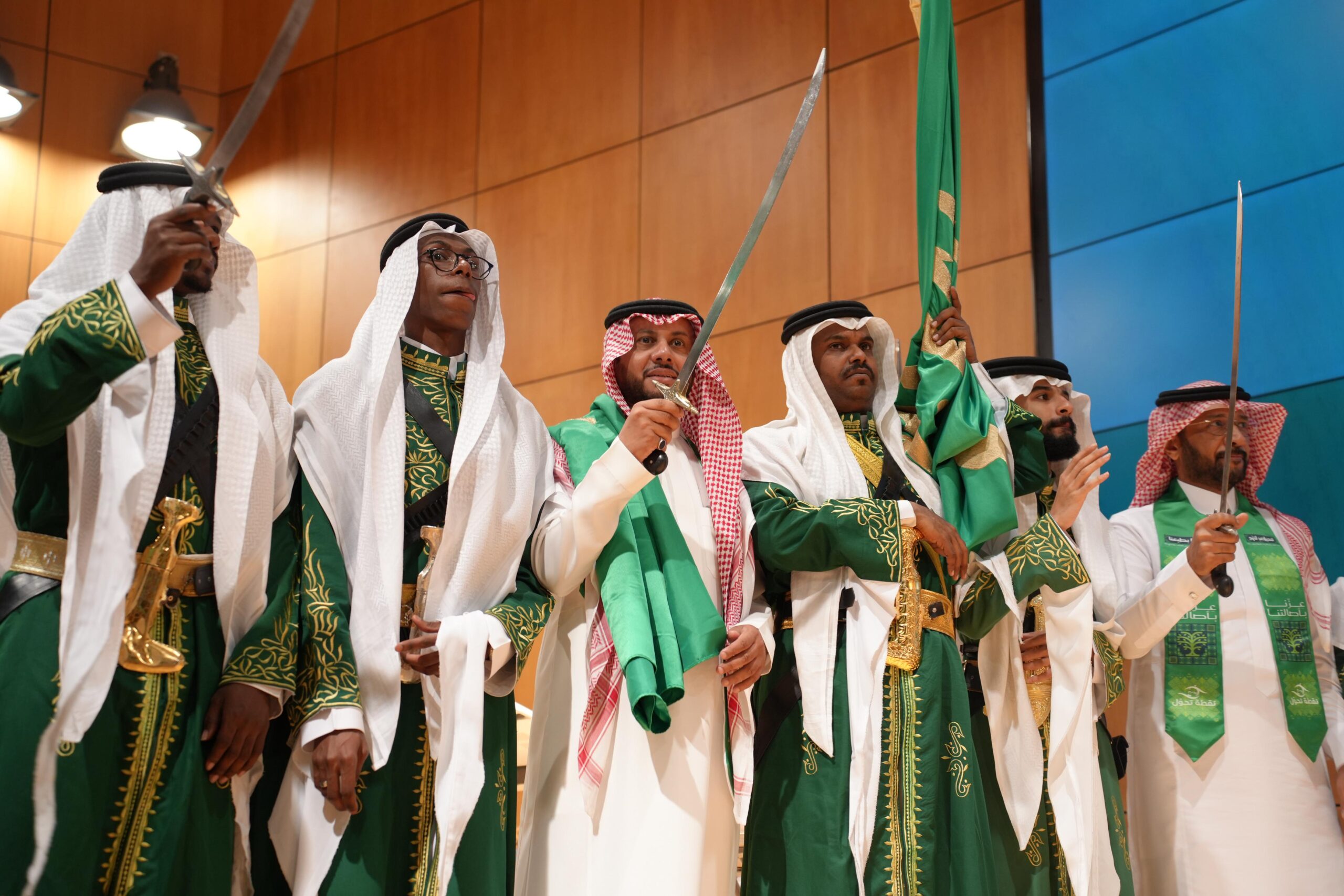 شهد الحفل حضوراً لافتاً ومشاركة واسعة من أبناء وبنات الوطن من ذوي الإعاقة البصرية، الذين قدّموا فقرات مفعمة بالإبداع والولاء. تنوعت الفعاليات بين قصيدة شعرية مؤثرة ألقاها أحد المكفوفين، وأوبريت وطني جسّد حب الوطن، إضافة إلى العرضة السعودية التي ألهبت حماس الحاضرين.