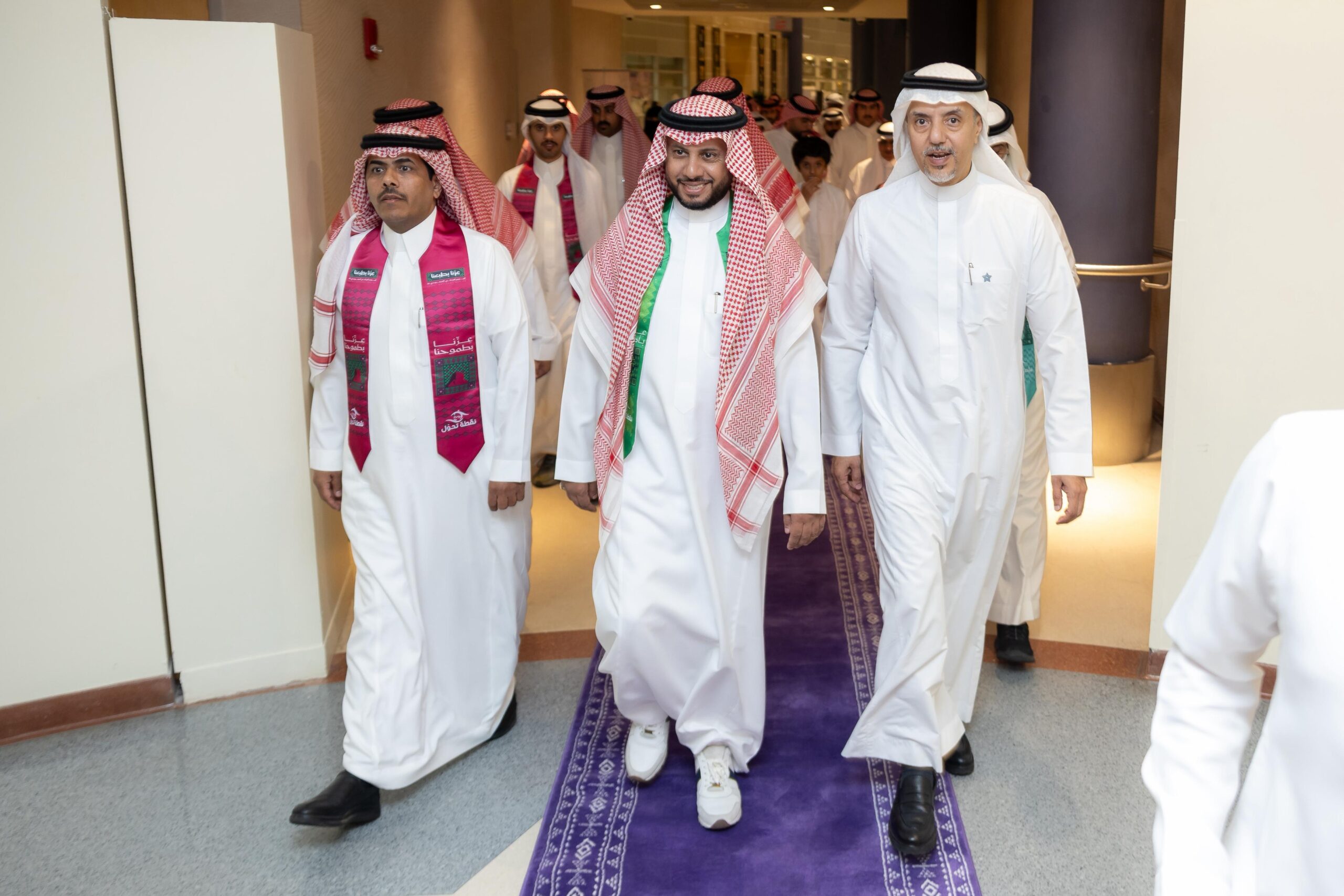 وفي كلمته خلال الحفل، أكد رئيس مجلس الإدارة الأستاذ علي بن صالح أبو عدله، أننا نحتفي بذكرى غالية على قلوبنا جميعًا، ذكرى اليوم الوطني الخامس والتسعين، يوم انطلقت منه مسيرة وطن عظيم، أسسه الملك المؤسس عبدالعزيز بن عبدالرحمن آل سعود – طيب الله ثراه – على دعائم راسخة من الإيمان والعزم والوحدة، ليستمر من بعده أبناؤه الملوك البررة في بناء صرح المجد حتى وصلنا اليوم إلى عهدٍ زاهرٍ بقيادة خادم الحرمين الشريفين الملك سلمان بن عبدالعزيز آل سعود وولي عهده الأمين صاحب السمو الملكي الأمير محمد بن سلمان – حفظهما الله – حيث أصبحت المملكة في مصاف الدول المتقدمة، ورمزًا للعزة والتمكين.