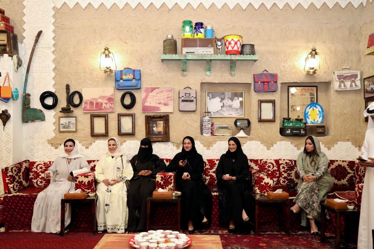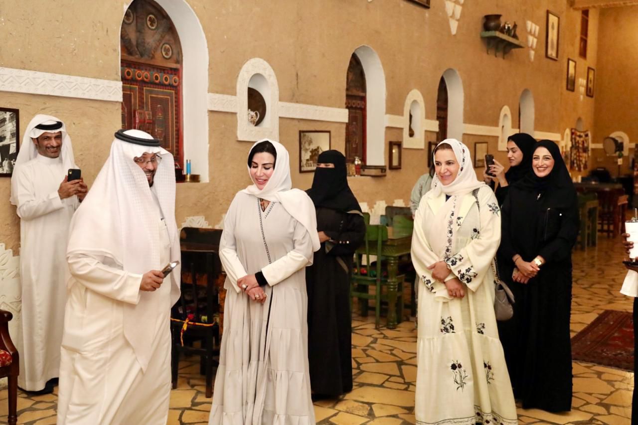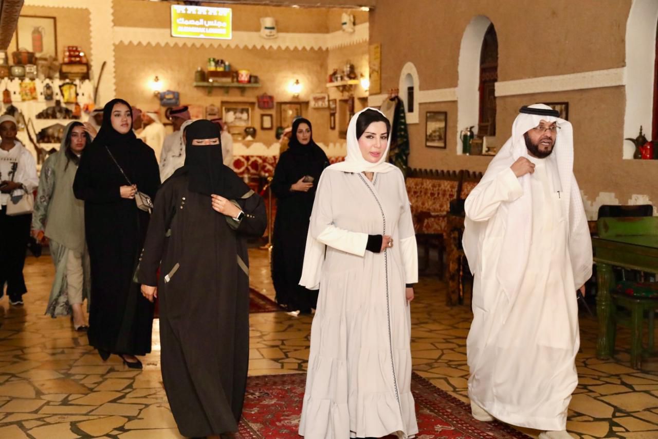 وفي بداية الاجتماع استقبل الأستاذ سعد البلحي الضيوف في المجلس العربي حيث قدم لهم القهوة السعودية والتمر والمرق واللبن الطازج ثم قام الحضور بجولة على أقسام القرية في الجلسات والأركان التي تحمل اسماء مناطق ومدن المملكة وكذلك جولة على القاعات والمجالس والجلسات الداخلية والمطل البحري وقدم البلحي تعريف للحضور بجميع المقتنيات الثمينة والنادرة والمتحف والسيارات القديمة والسوق الشعبي.
