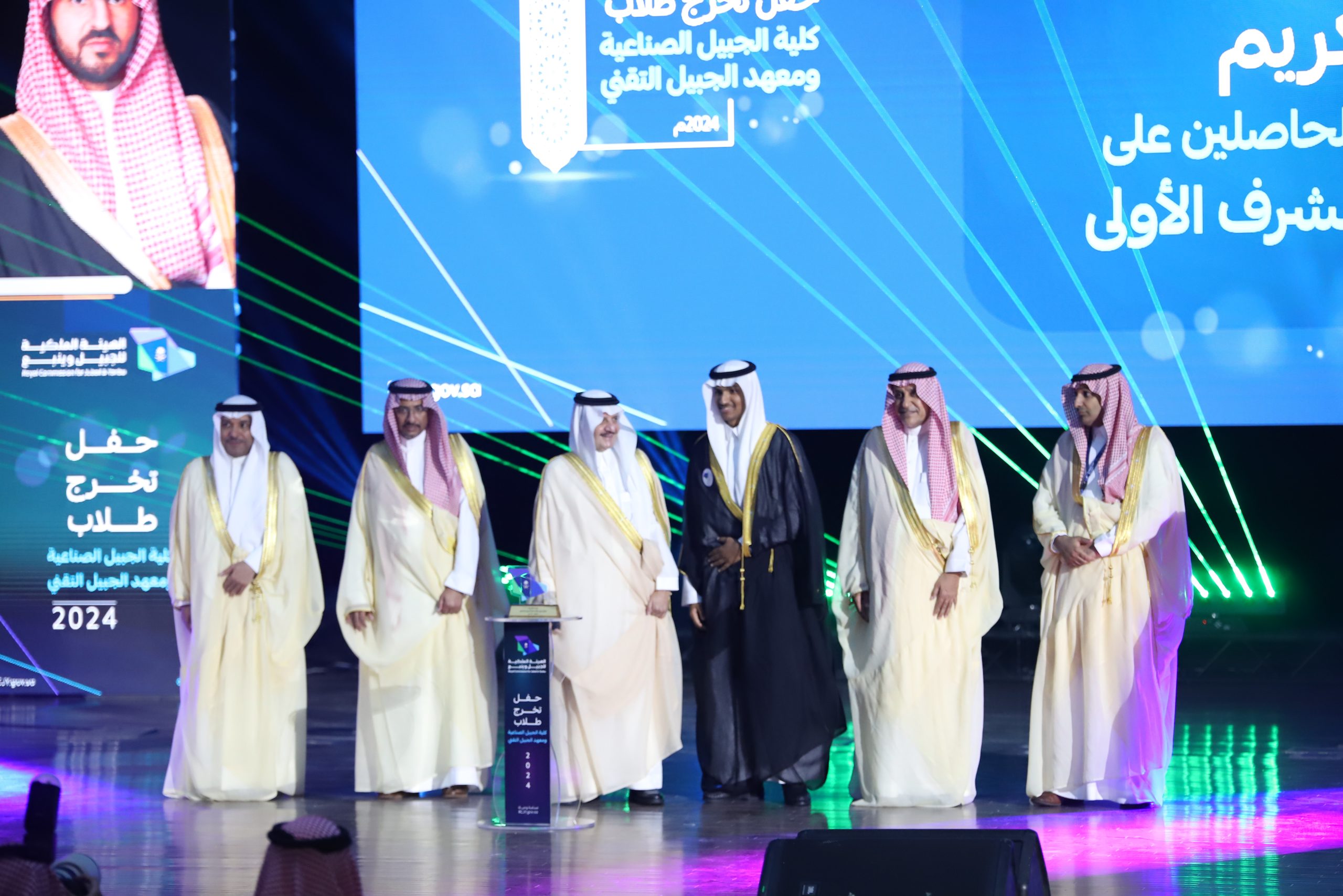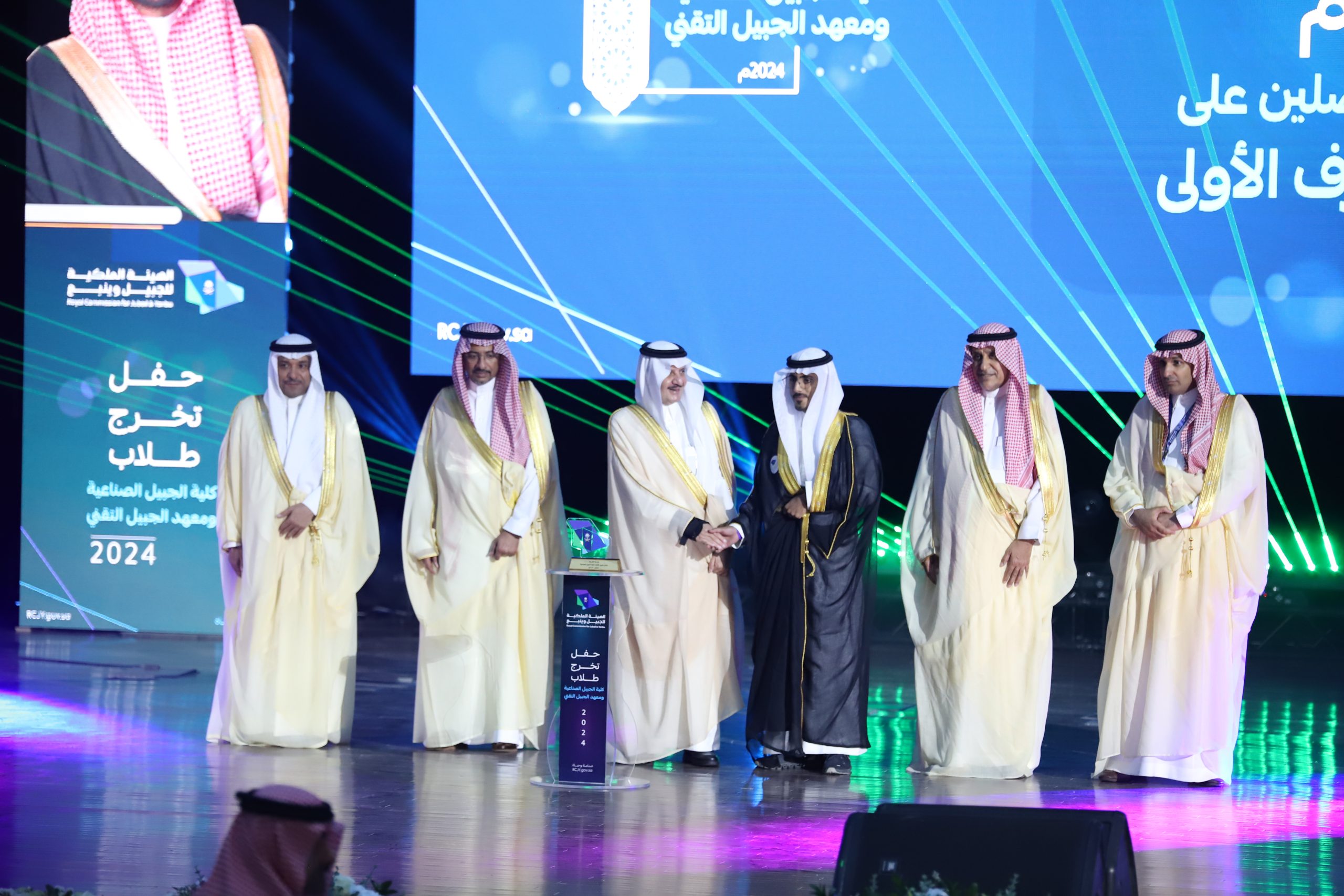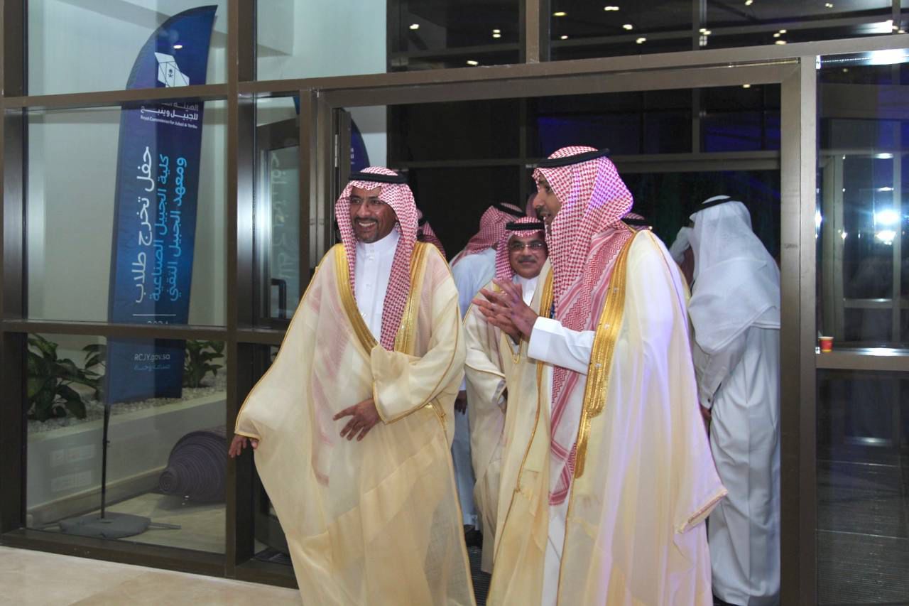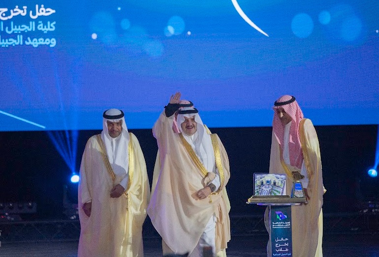ورعى صاحب السمو الملكي الأمير سعود بن نايف بن عبد العزيز أمير الشرقية مساء الأحد حفل تخرج طلاب كلية الجبيل الصناعية ومعهد الجبيل التقني 2024م والبالغ عددهم (2893) خريج بحضور معالي وزير الصناعة والثروة المعدنية رئيس مجلس إدارة الهيئة الملكية للجبيل وينبع الأستاذ بندر بن إبراهيم الخريف ومعالي رئيس الهيئة الملكية للجبيل وينبع المهندس خالد بن محمد السالم، بمسرح المدينة الجامعية بمدينة الجبيل الصناعية.