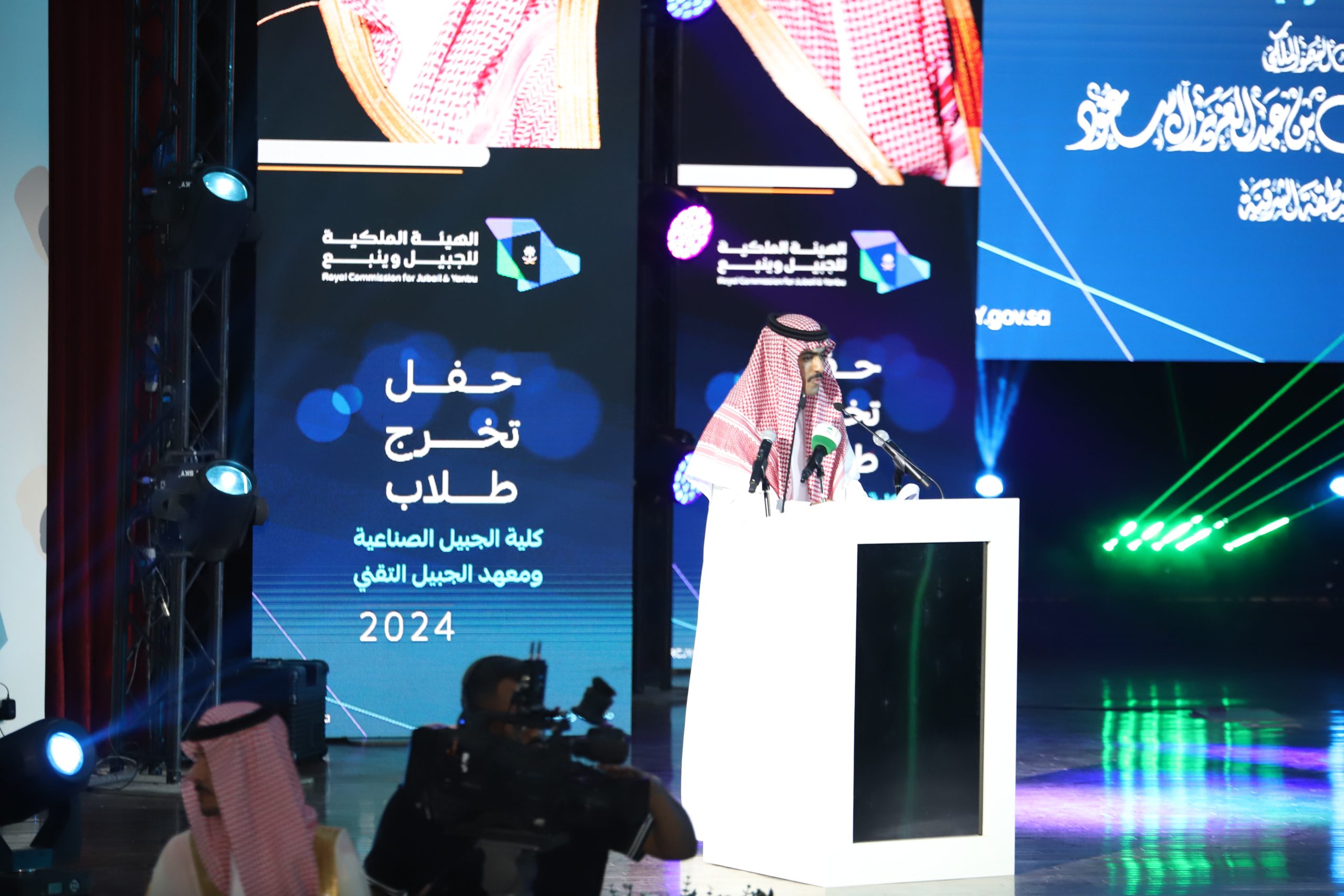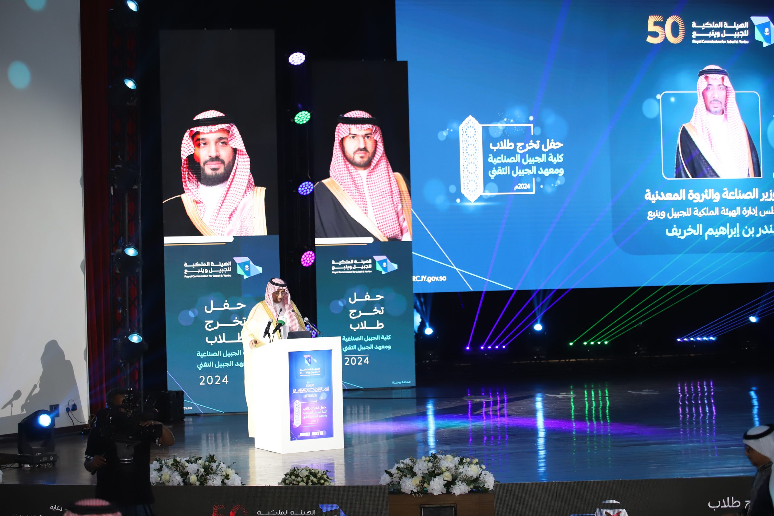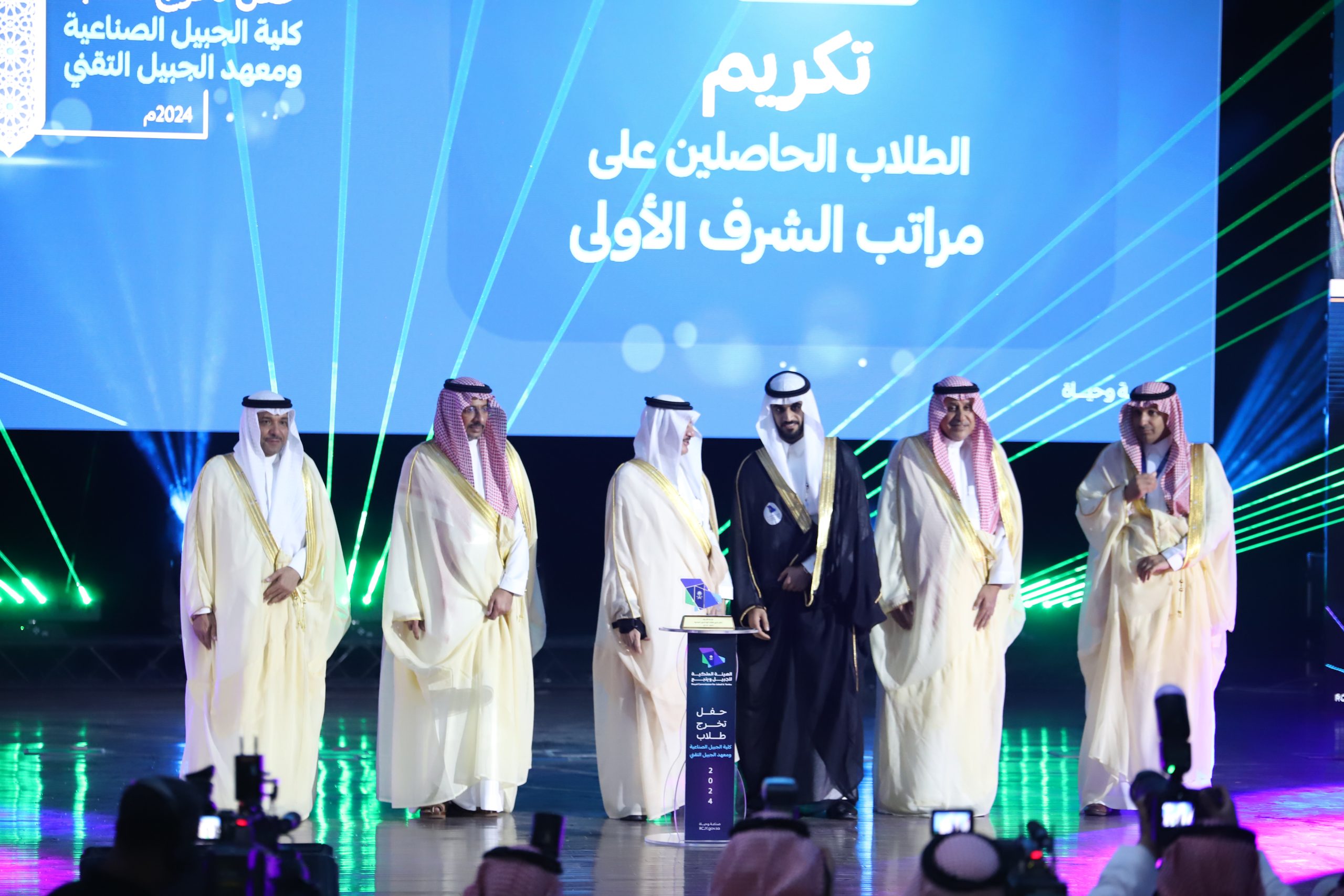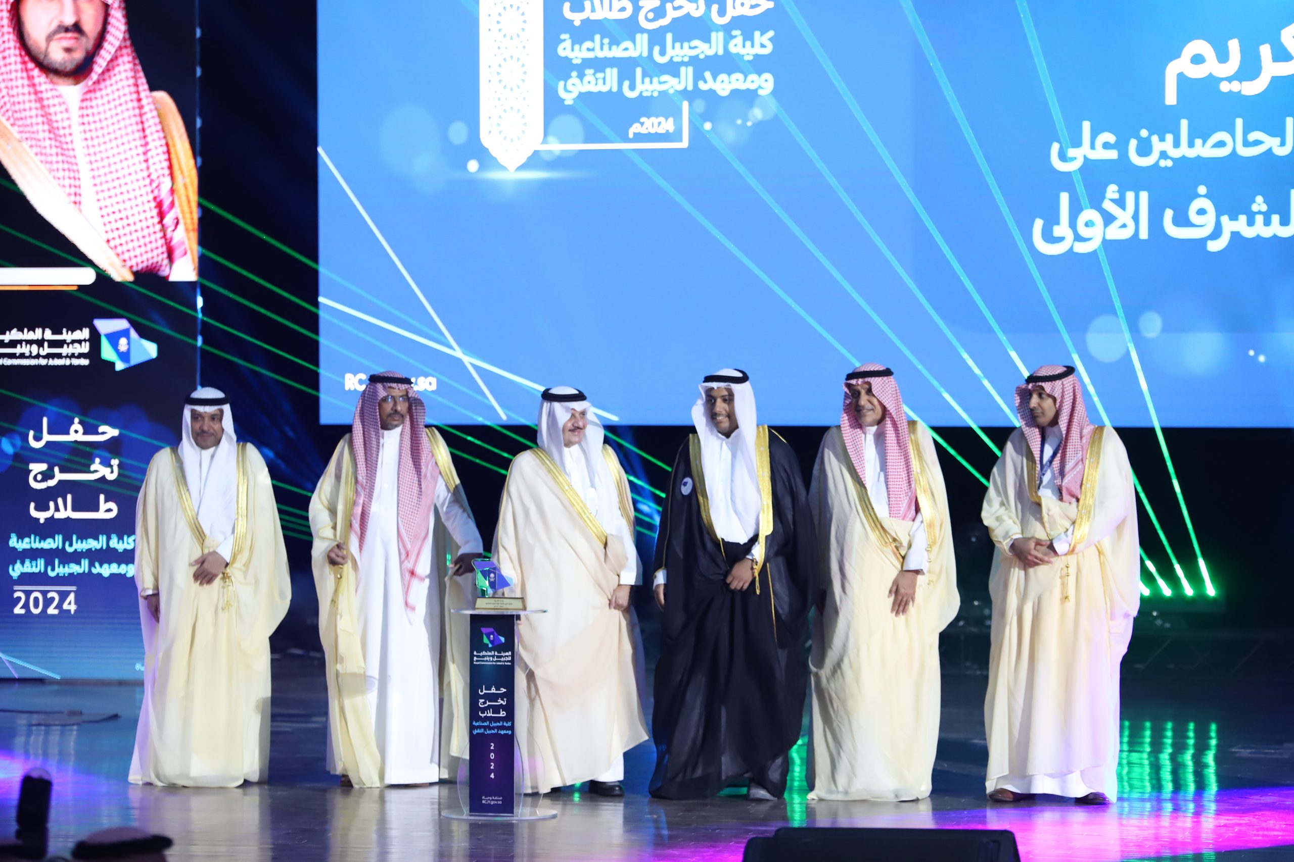 ورعى صاحب السمو الملكي الأمير سعود بن نايف بن عبد العزيز أمير الشرقية مساء الأحد حفل تخرج طلاب كلية الجبيل الصناعية ومعهد الجبيل التقني 2024م والبالغ عددهم (2893) خريج بحضور معالي وزير الصناعة والثروة المعدنية رئيس مجلس إدارة الهيئة الملكية للجبيل وينبع الأستاذ بندر بن إبراهيم الخريف ومعالي رئيس الهيئة الملكية للجبيل وينبع المهندس خالد بن محمد السالم، بمسرح المدينة الجامعية بمدينة الجبيل الصناعية.