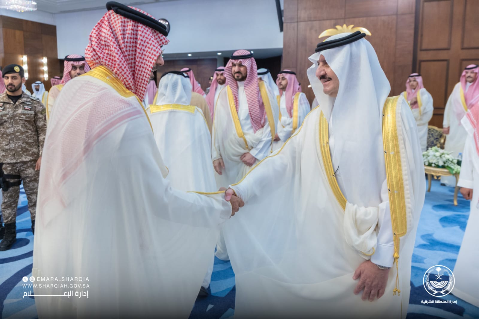 استقبل صاحب السمو الملكي الأمير سعود بن نايف بن عبدالعزيز أمير المنطقة الشرقية، وصاحب السمو الملكي الأمير سعود بن بندر بن عبدالعزيز نائب أمير المنطقة الشرقية، صباح اليوم الجمعة، جموع المهنئين بعيد الأضحى، وذلك في مقر الإمارة.