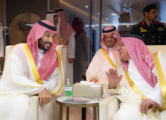 صور .. سمو ‏⁧‫ولي العهد‬⁩ خلال تشريفه المباراة النهائية على كأس خادم الحرمين الشريفين بين فريقي الاتحاد والقادسية
