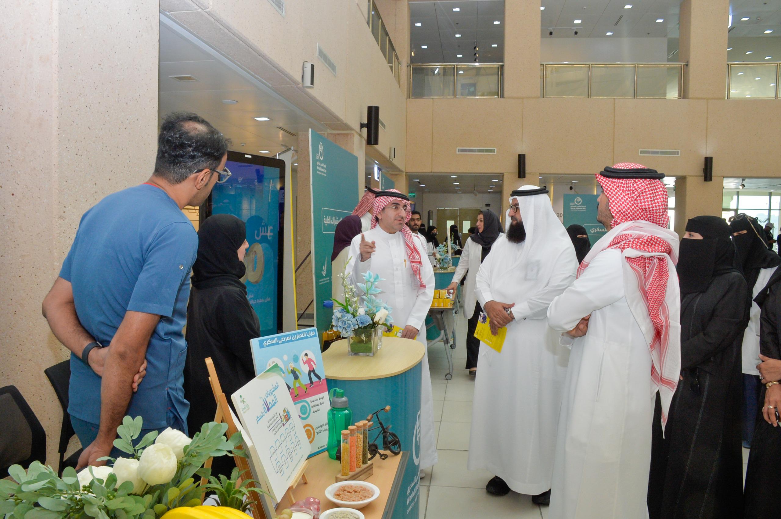 فيما أوضحت استشاري طب الاسرة ووكيلة كلية الطب للتطوير والشراكة المجتمعية الدكتورة غادة اليوسف بان المعرض شهد مشاركة عشرة أركان توعوية وتفاعلية شملت التعريف بالمرض، ونمط الحياة الصحي، ومضاعفات السكري، والأدوية المتقدمة، إضافة إلى ركن “عِش 80”، إحدى المبادرات الوطنية الهادفة إلى رفع متوسط عمر الفرد في المملكة إلى 80 عامًا ، كما تم تخصيص وحدة متنقلة في مبنى D3 لإجراء الفحوصات الأساسية داخل بيئة العمل، وتشمل قياسات العلامات الحيوية، وضغط الدم، والطول والوزن، وفحص السكر، مع توجيه الزوار للحصول على الاستشارات الطبية من متخصصي الغدد الصماء في كلية الطب.