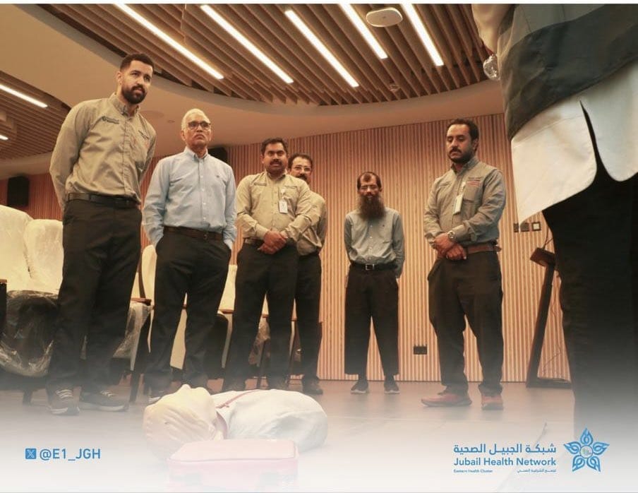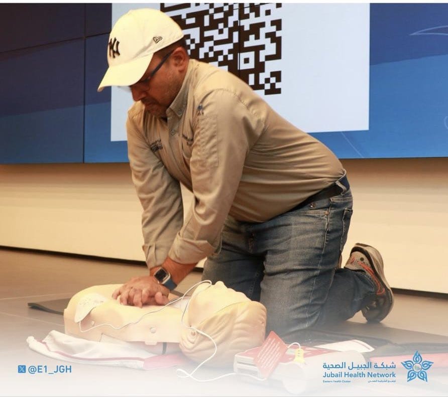 هدفت الفعالية لرفع وعي الموظفين وتدريبهم للاستجابة للحالات الطارئة #المستجيب_الأول_بالجبيل.