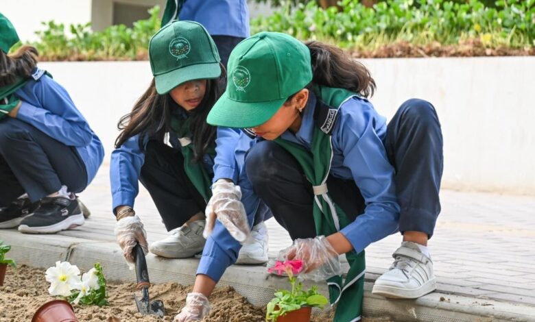 أطفال المدارس يشاركون بلدية الظهران في مبادرة (ازرع جمالا) لزراعة الورود في حديقة الأمانة