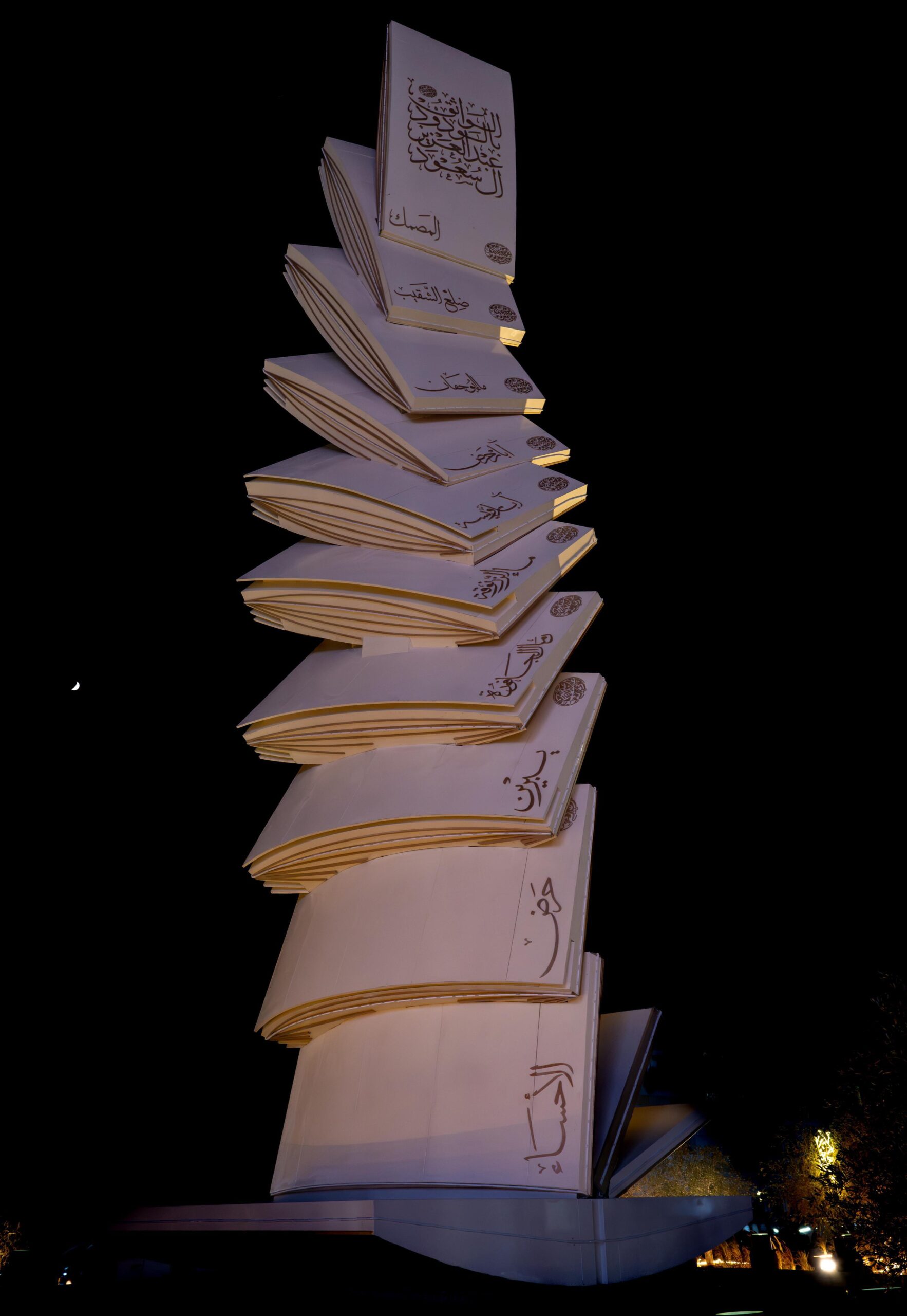 ”الواثق بالودود عبدالعزيز آل سعود” فيما تبلغ مساحة المجسم 2184 متر مربع ويقع عند تقاطع طريق خادم الحرمين الشريفين مع طريق الأمير تركي في مدينة الخبر وهو إهداء من شركة رتال للتطوير العمراني.