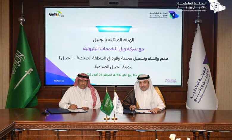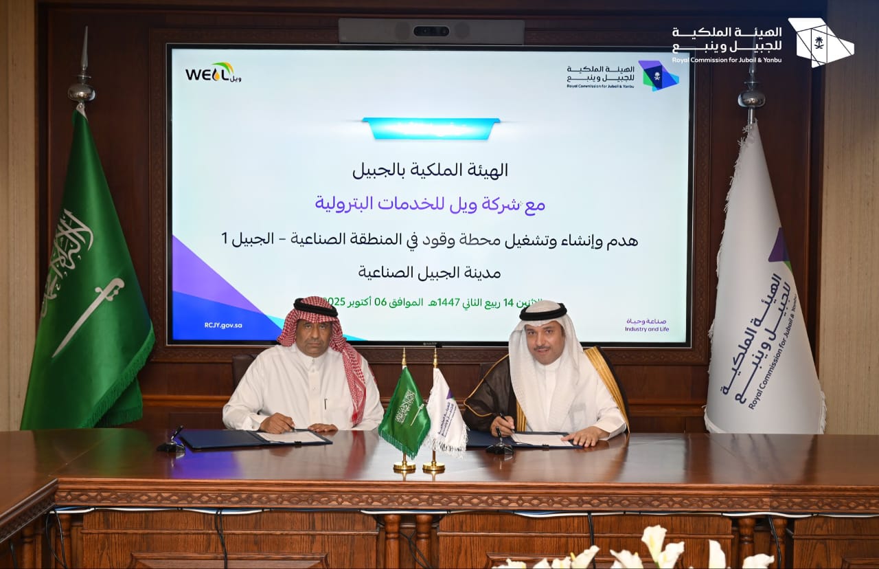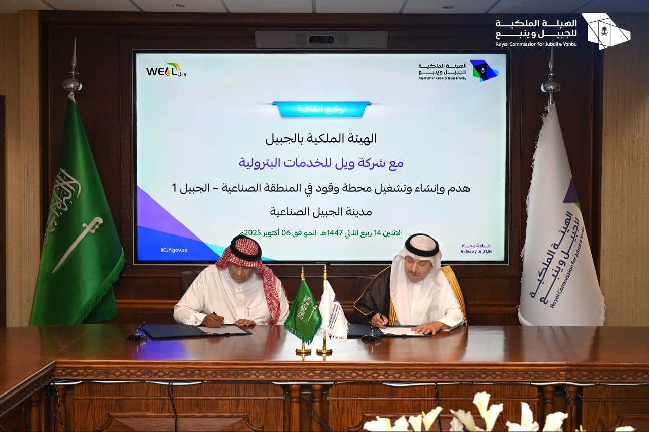 وقّع الرئيس التنفيذي للهيئة الملكية بالجبيل م. محمود الذيب اتفاقية مع شركة (ويل) للخدمات البترولية وذلك لهدم وإنشاء وتشغيل محطة وقود في المنطقة الصناعية - الجبيل 1.
