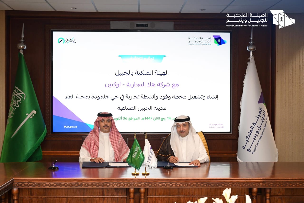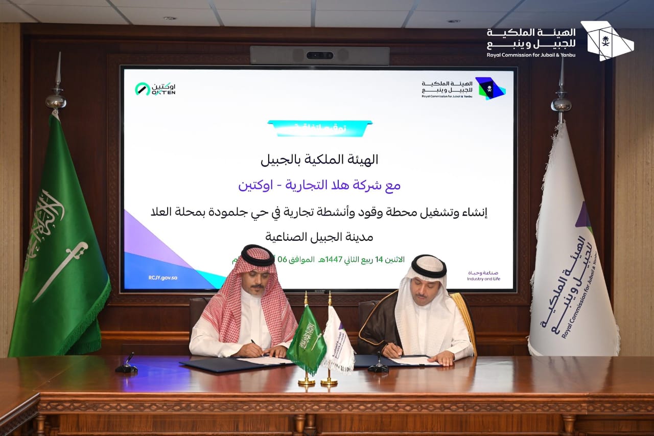 وقّع الرئيس التنفيذي للهيئة الملكية بالجبيل م. محمود الذيب اتفاقية مع شركة هلا التجارية (اوكتين) وذلك لإنشاء وتشغيل محطة وقود وأنشطة تجارية في حي جلمودة بمحلة العلا في مدينة #الجبيل_الصناعية.