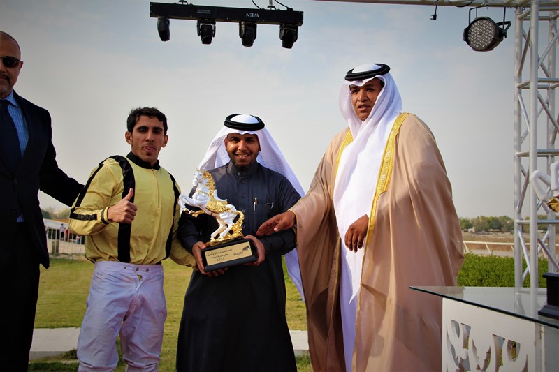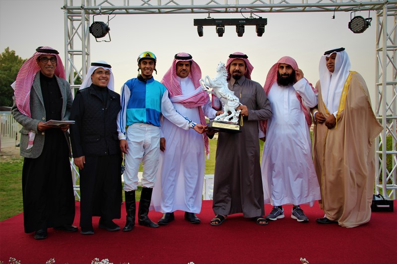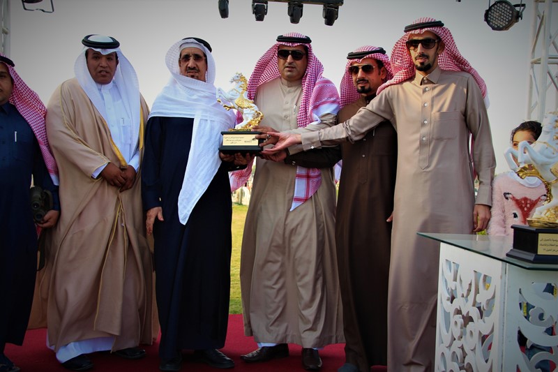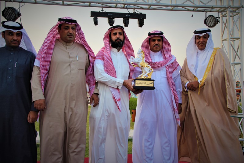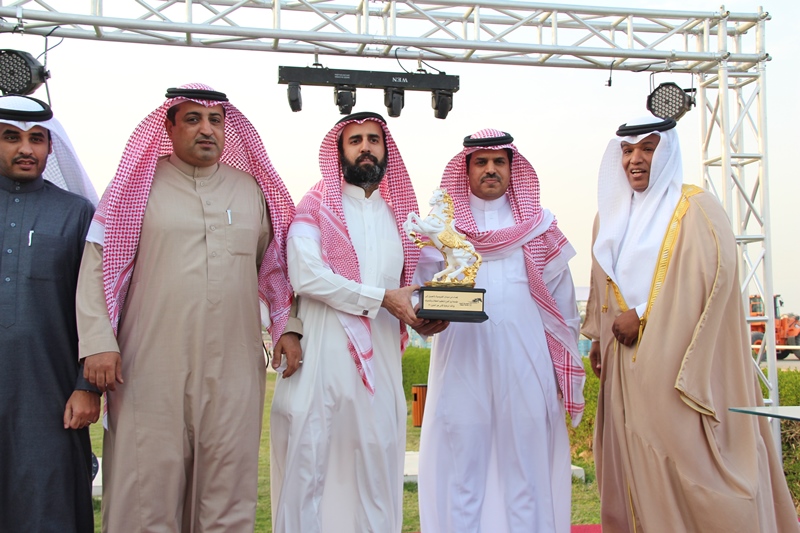 وقد قام الأستاذ راشد بن غانم القحطاني – مدير عام ميدان الفروسية بالجبيل بتسليم كأس الحفل التاسع الذي يقام بدعم من قبل سمو الأمير سلطان بن محمد الكبير يحفظه الله إلى المالك محمد القحطاني بهذه المناسبة.
