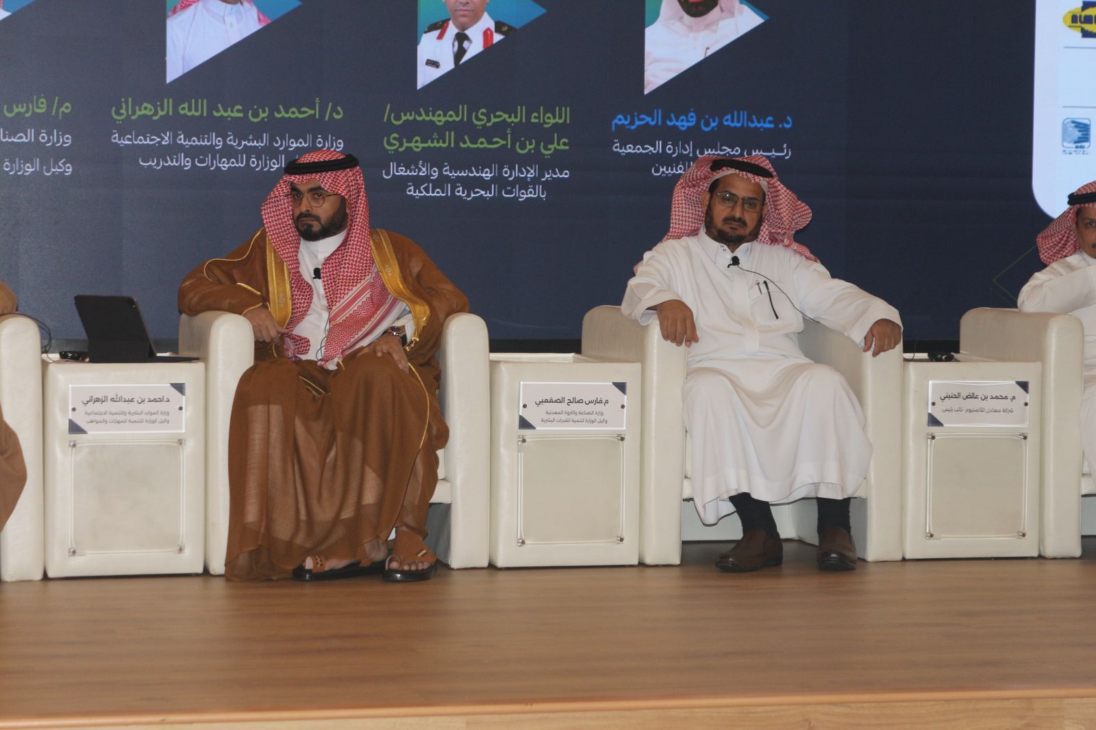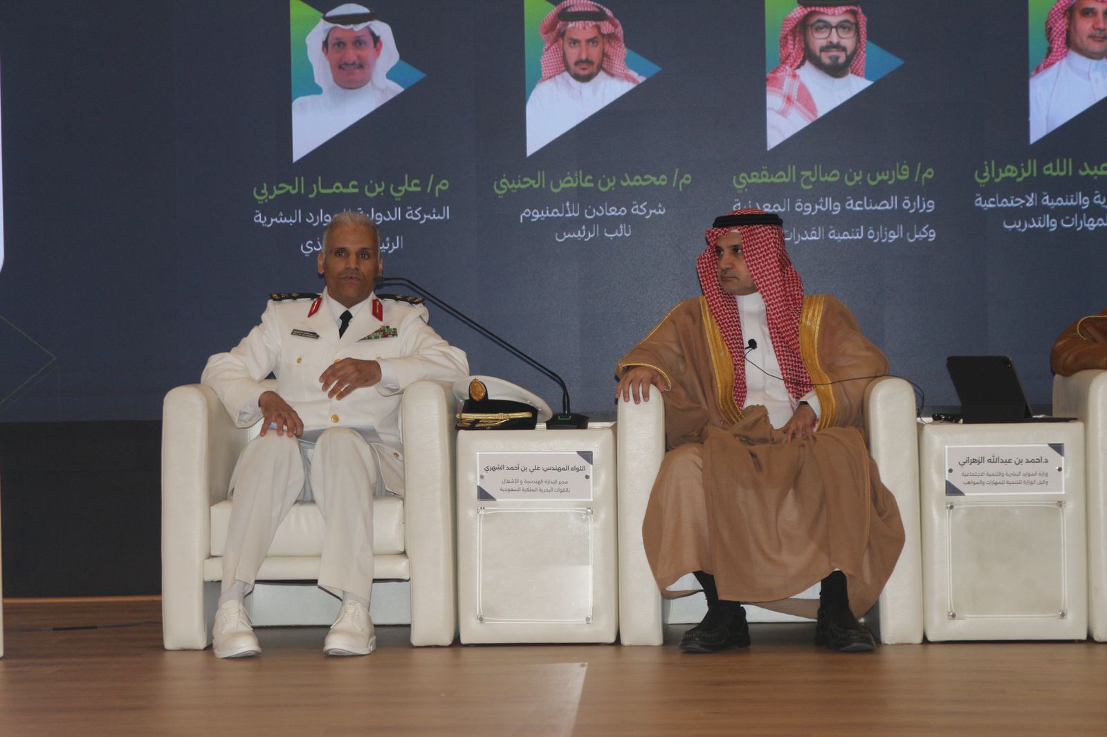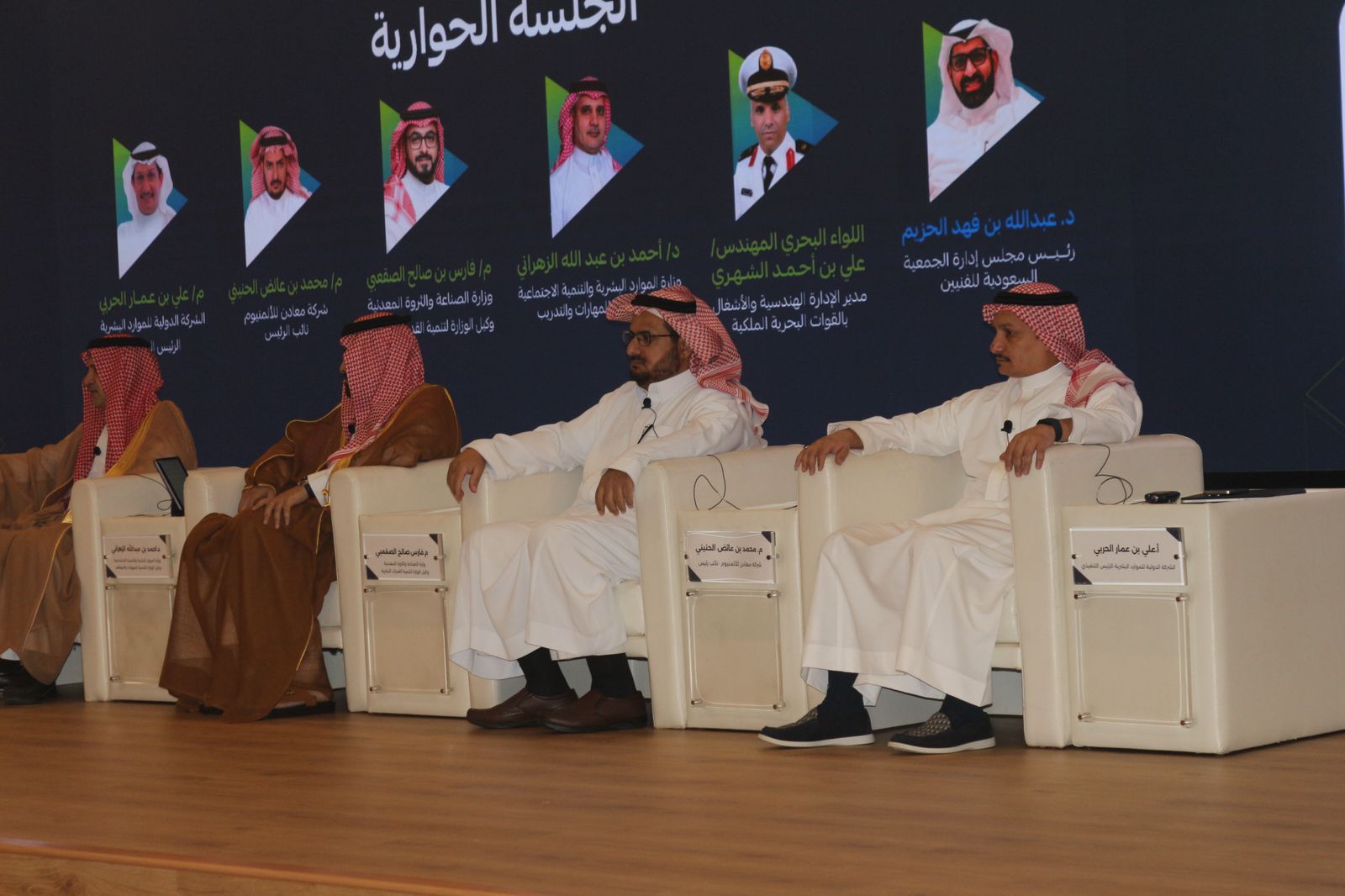 وتضمنت فعاليات المؤتمر جلسة حوارية رئيسية شارك فيها عدد من القيادات البارزة، من ضمنهم اللواء الدكتور علي الشهري ممثل وزارة الدفاع ، والدكتور أحمد الزهراني وكيل وزارة الموارد البشرية والتنمية الاجتماعية للمهارات والتدريب، والمهندس فارس الصقعبي وكيل وزارة الصناعة والثروة المعدنية لتنمية القدرات البشرية، والأستاذ محمد الحنيني نائب رئيس شركة معادن، والأستاذ علي الحربي الرئيس التنفيذي للشركة الدولية للموارد البشرية، فيما أدار الجلسة رئيس مجلس إدارة الجمعية السعودية للفنيين الدكتور عبدالله الحزيم.