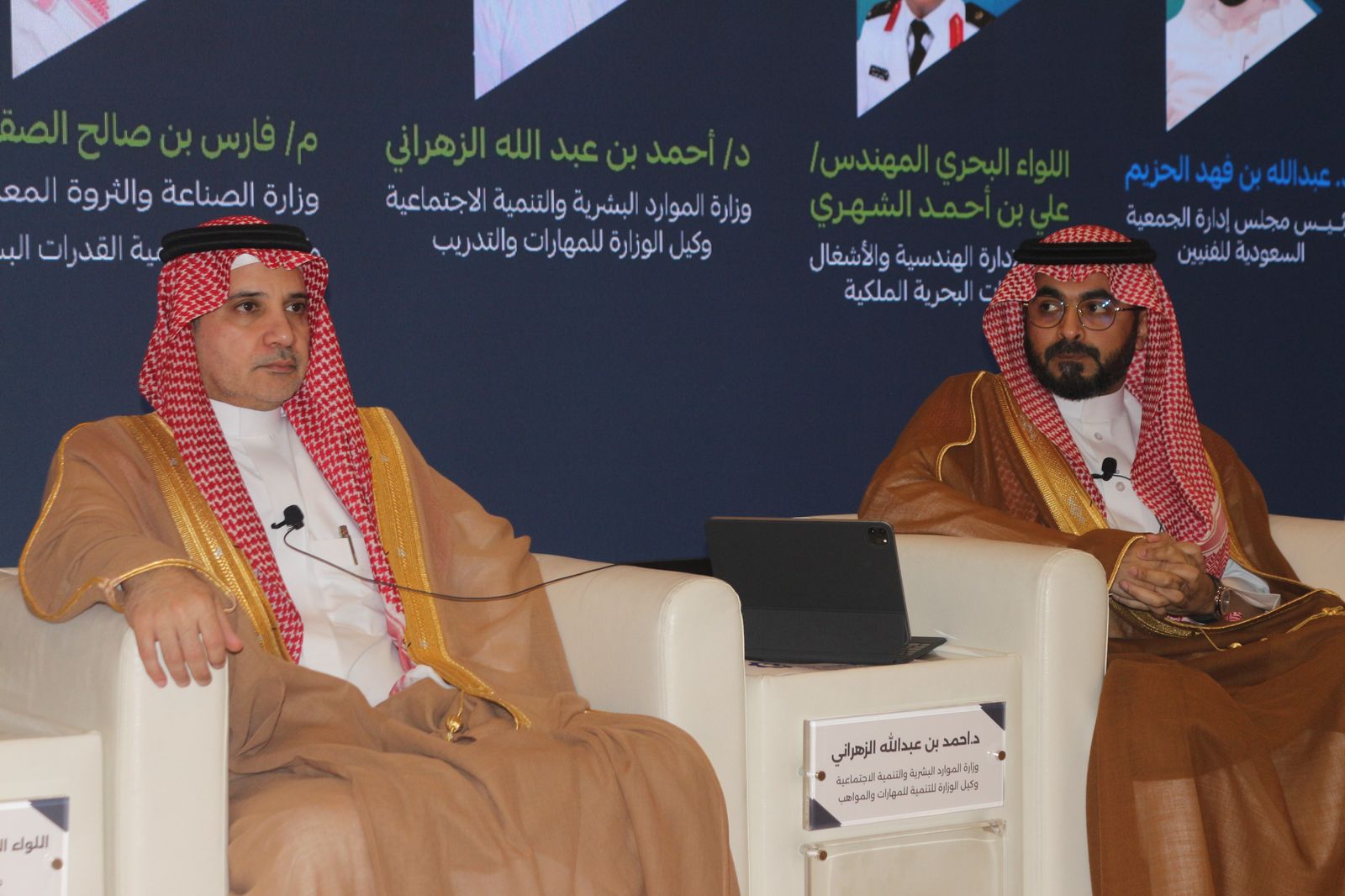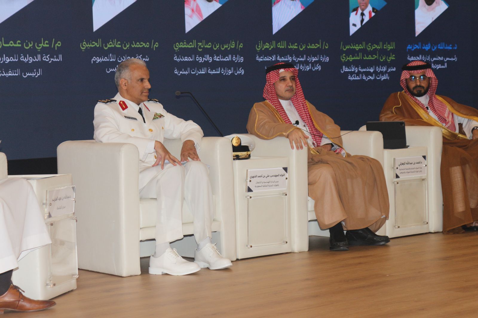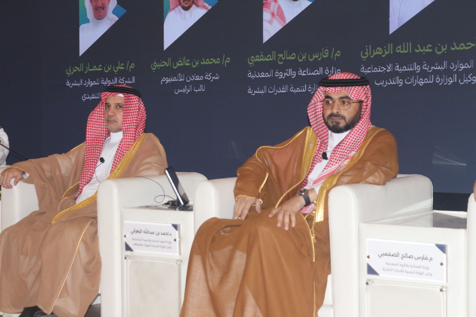 وتضمنت فعاليات المؤتمر جلسة حوارية رئيسية شارك فيها عدد من القيادات البارزة، من ضمنهم اللواء الدكتور علي الشهري ممثل وزارة الدفاع ، والدكتور أحمد الزهراني وكيل وزارة الموارد البشرية والتنمية الاجتماعية للمهارات والتدريب، والمهندس فارس الصقعبي وكيل وزارة الصناعة والثروة المعدنية لتنمية القدرات البشرية، والأستاذ محمد الحنيني نائب رئيس شركة معادن، والأستاذ علي الحربي الرئيس التنفيذي للشركة الدولية للموارد البشرية، فيما أدار الجلسة رئيس مجلس إدارة الجمعية السعودية للفنيين الدكتور عبدالله الحزيم.