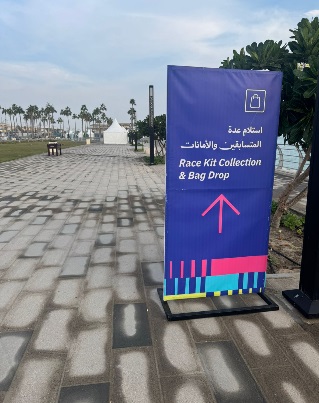 وسيتم خلال هذه الفترة تسليم المشاركين الحقائب الرسمية، والأرقام الإلكترونية (Bib)، والشرائح الخاصة بالتوقيت إلى جانب الرد على استفسارات العدّائين، وتوفير نقاط دعم وإرشاد.