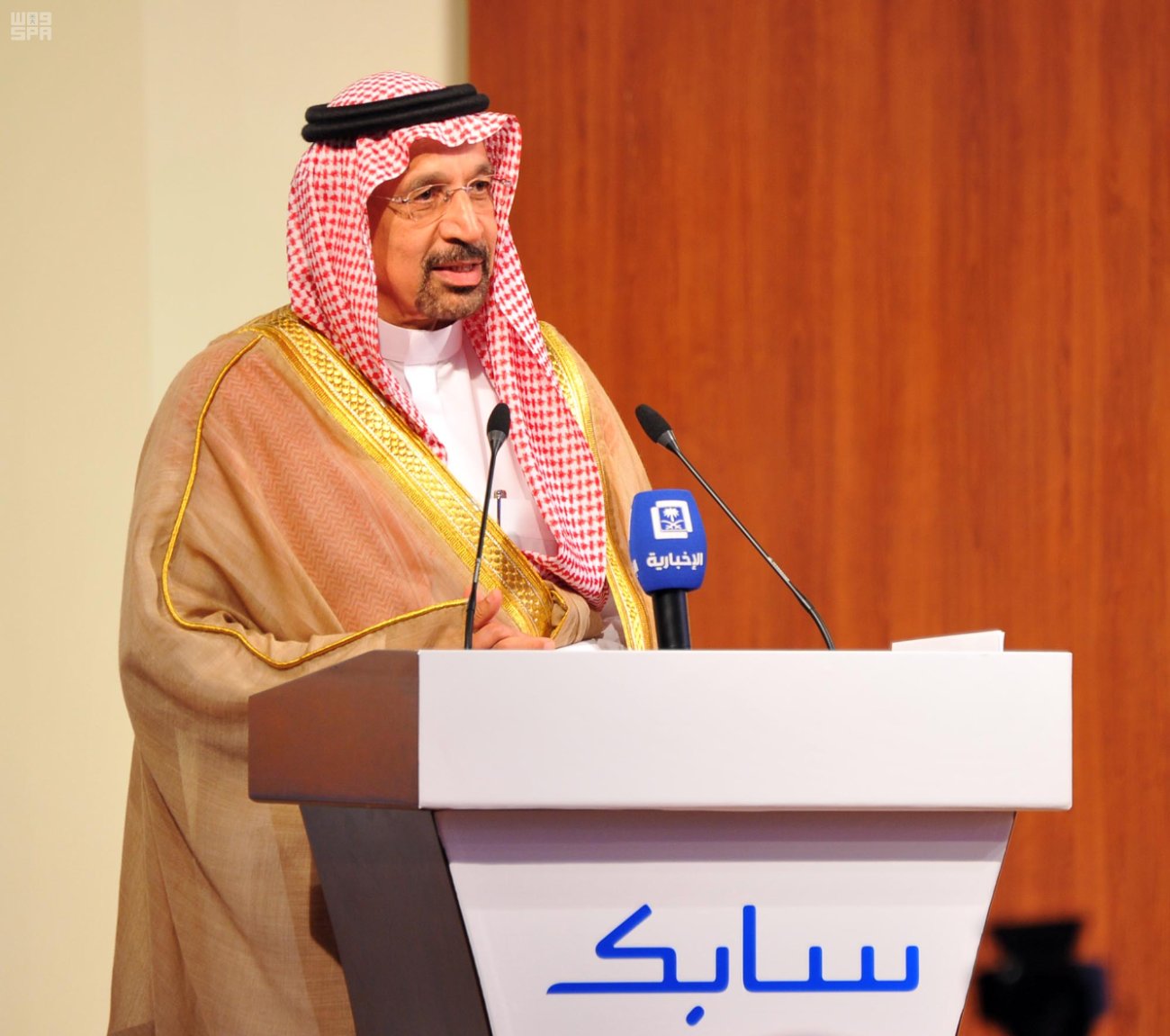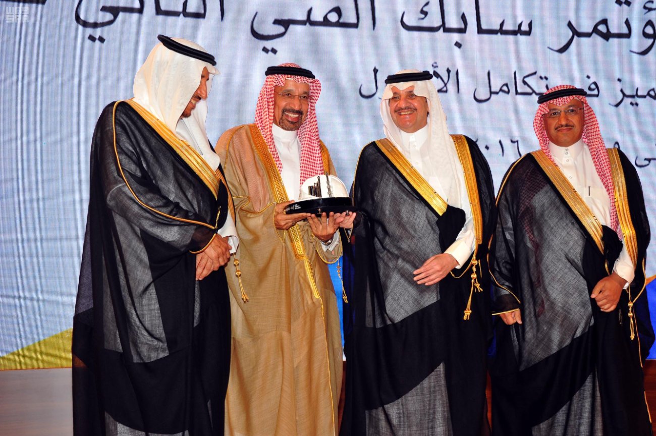 تلا ذلك كلمة معالي وزير الطاقة والصناعة والثروة المعدنية المهندس خالد بن عبد العزيز الفالح والتي أكد خلالها أن سجلُّ المملكة حافلٌ بالإنجازات في مجالات التنمية عموماً، والتنمية الاقتصادية والصناعية خصوصا , مشيراً إلى أن القطاع الصناعي يقف اليوم على ثلاث ركائز أساس وهي النفط والبتروكيميائيات والتعدين، تسهم جميعها في تنويع مصادر الدخل ودعم صناعات وقطاعات اقتصادية أخرى.