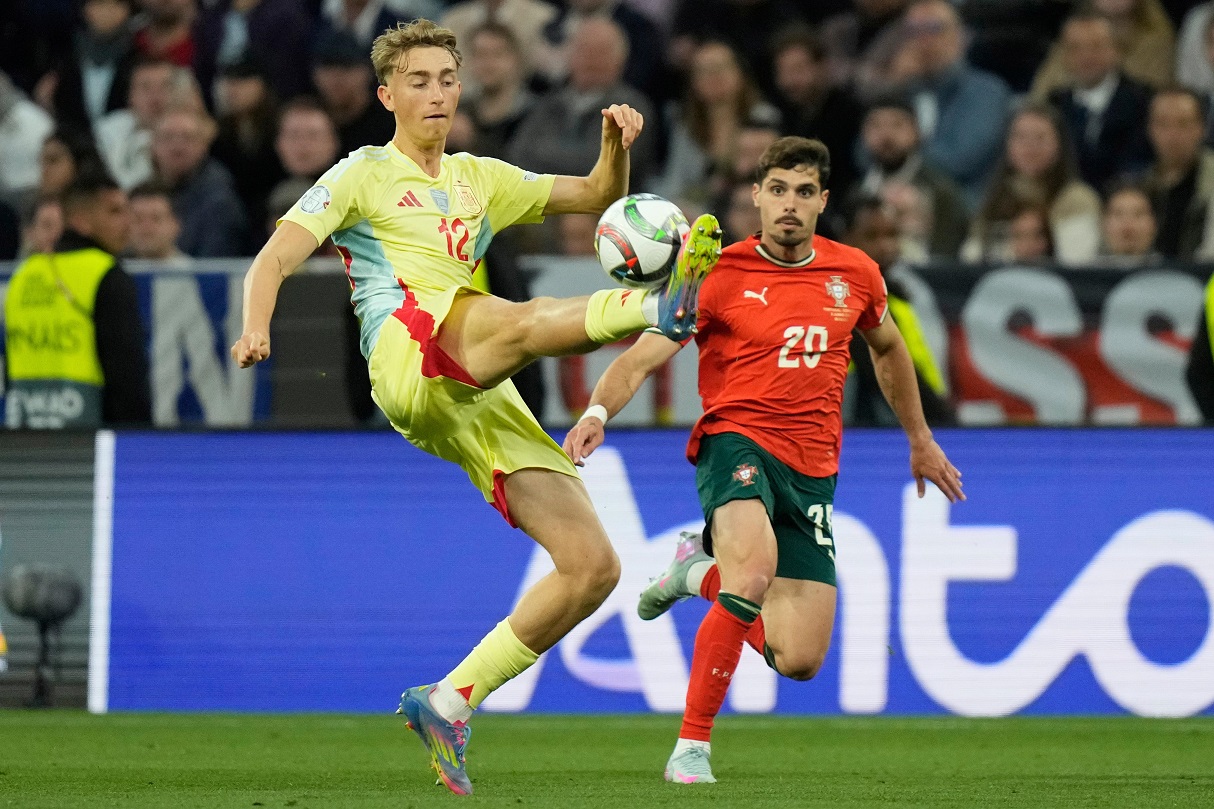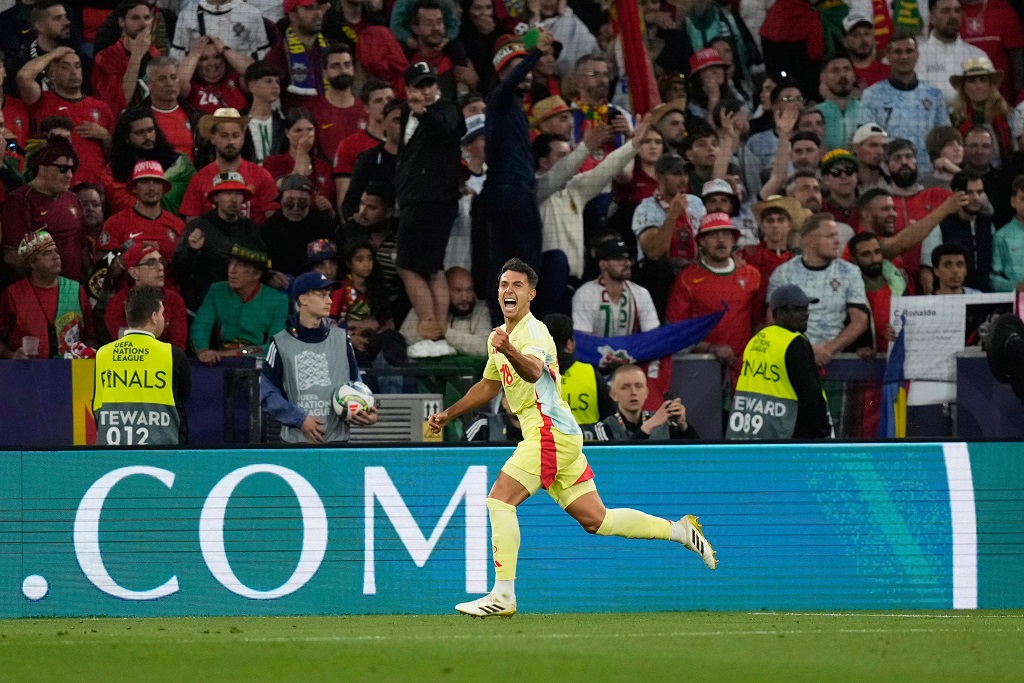 وبادر منتخب إسبانيا، بالتسجيل عن طريق مارتن زوبيميندي في الدقيقة (21)، لكن سرعان ما أحرز نونو مينديش هدف التعادل للبرتغال في الدقيقة (26).