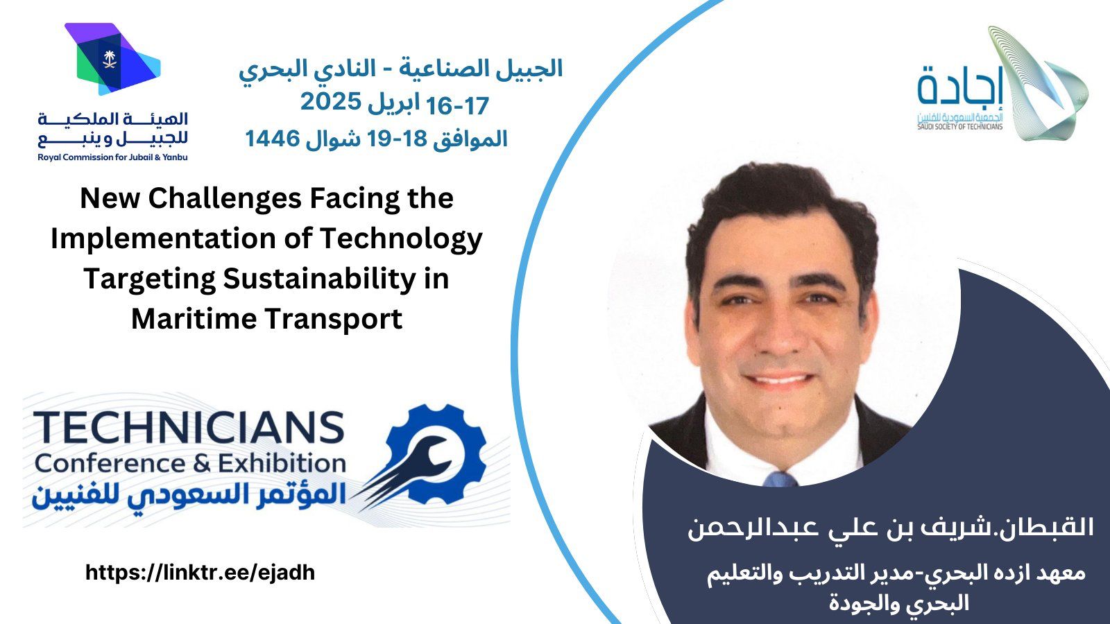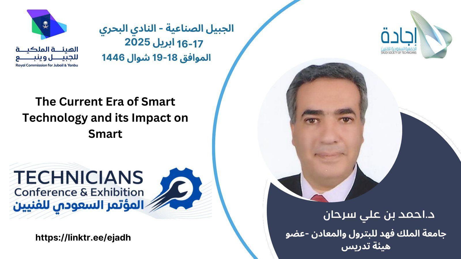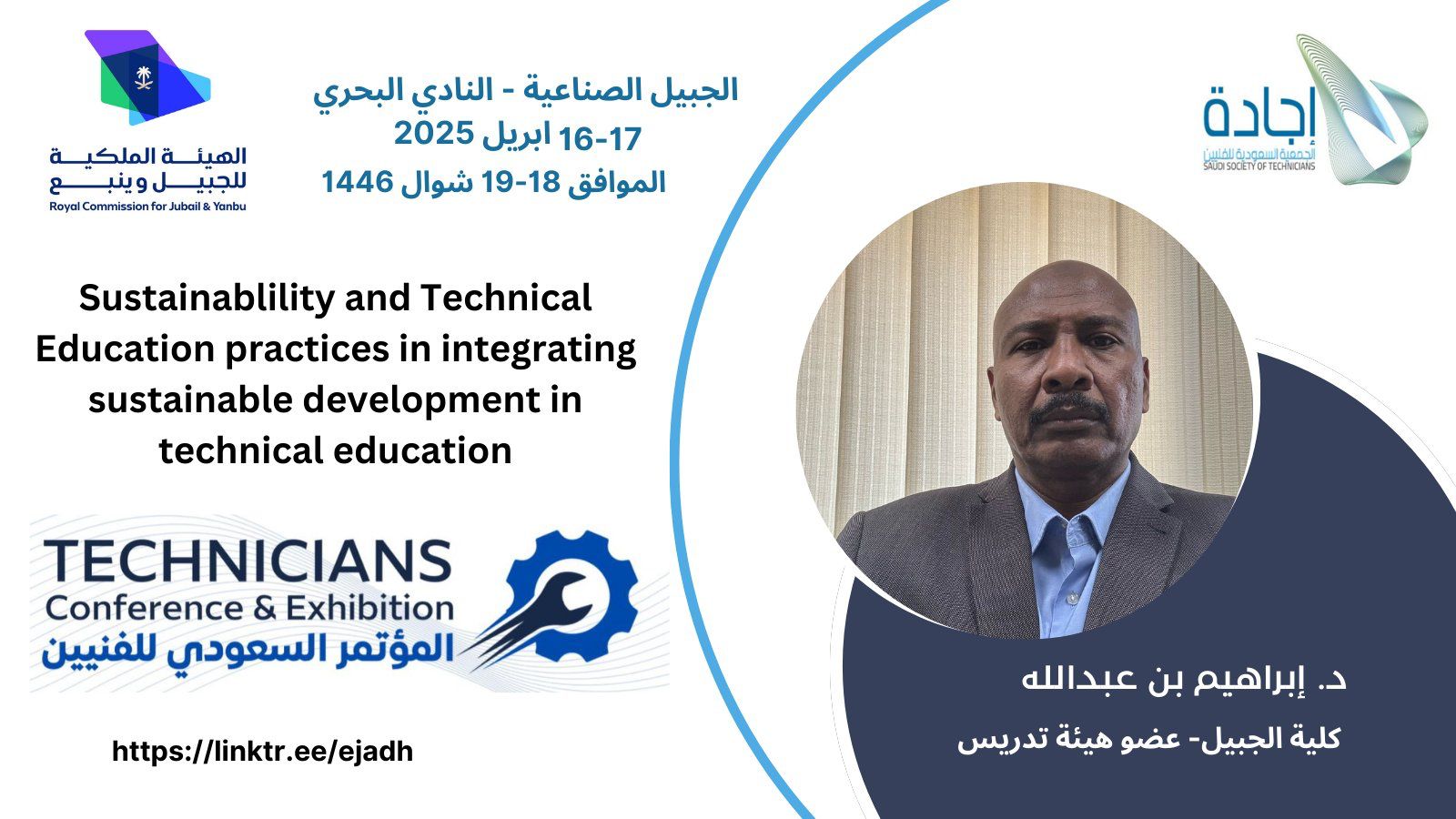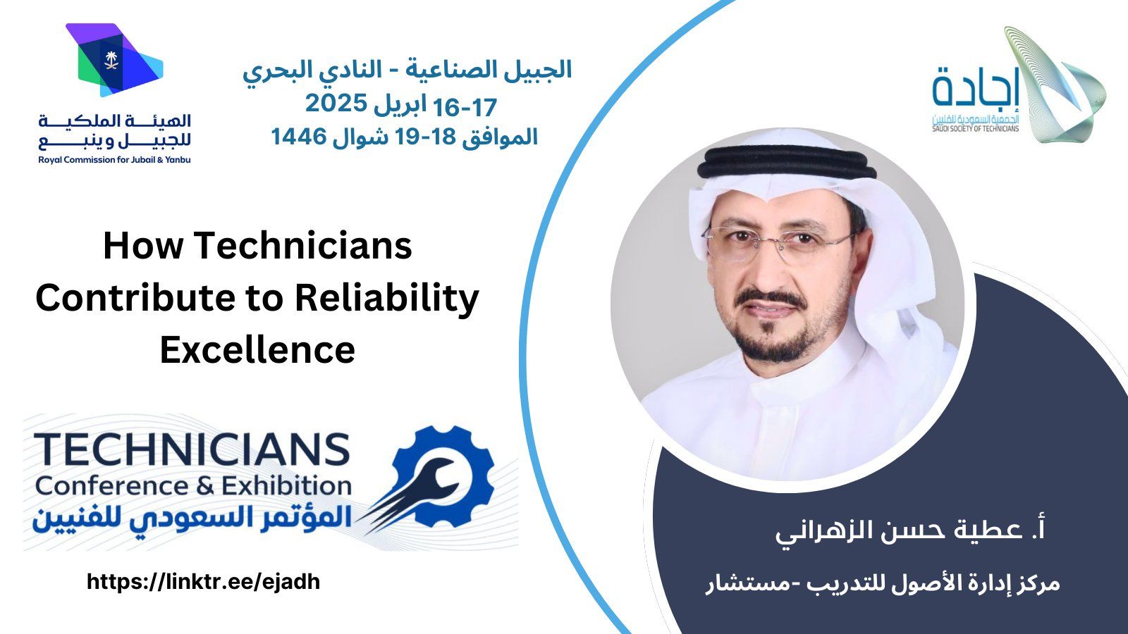 تحت رعاية الرئيس التنفيذي للهيئة الملكية بالجبيل المهندس محمود الذيب تقيم الجمعية السعودية للفنيين #إجادة (المؤتمر السعودي للفنيين) بمدينة #الجبيل_الصناعية يومي الأربعاء والخميس 16 – 17 / 04 / 2025 م بالنادي البحري بدارين الساعة الـ 9 صباحاً.