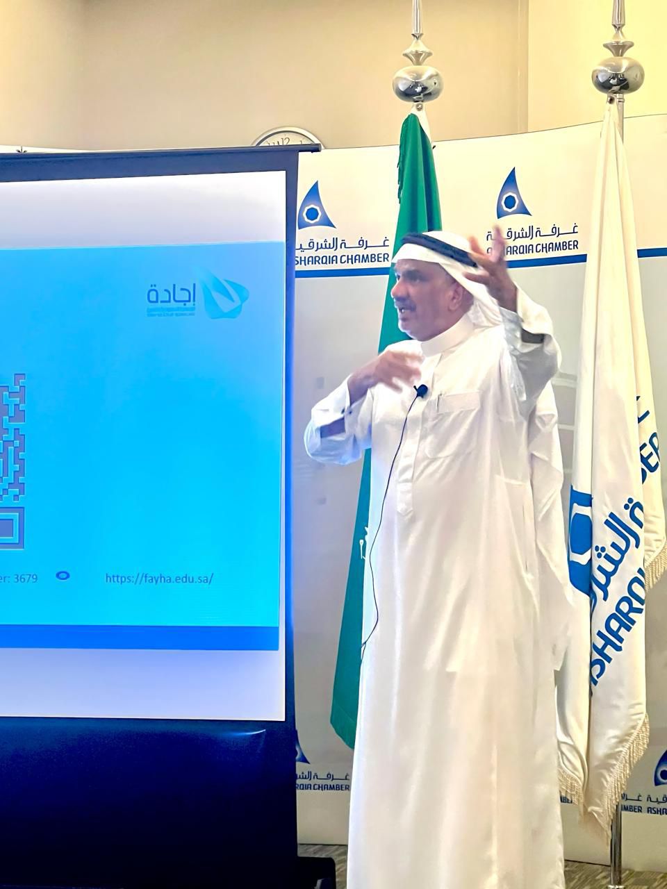 كما أشار الأستاذ علي فليج الخالدي إلى شكره وتقديره للكلية على مشاركتها في لقاء إجادة توك، والتعريف بها، مؤكدًا أن تأسيس الكلية يُعد أمنية لأهالي الجبيل بعد أن كان أبناؤهم وبناتهم يبحثون عن بدائل للدراسة داخل أو خارج المملكة نتيجة محدودية القبول في الجامعات والكليات الحكومية بالجبيل.