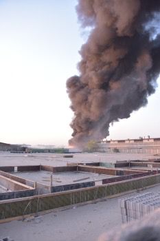 هذا وقد تصاعد كمية كثيفة من الدخان امتدت الى مسافات بعيدة مشكلة سحابة سوداء فوق الموقع.