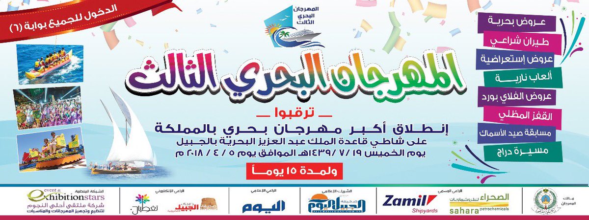 اليوم الخميس .. محافظ #الجبيل يطلق #المهرجان_البحري_الثالث_بالجبيل