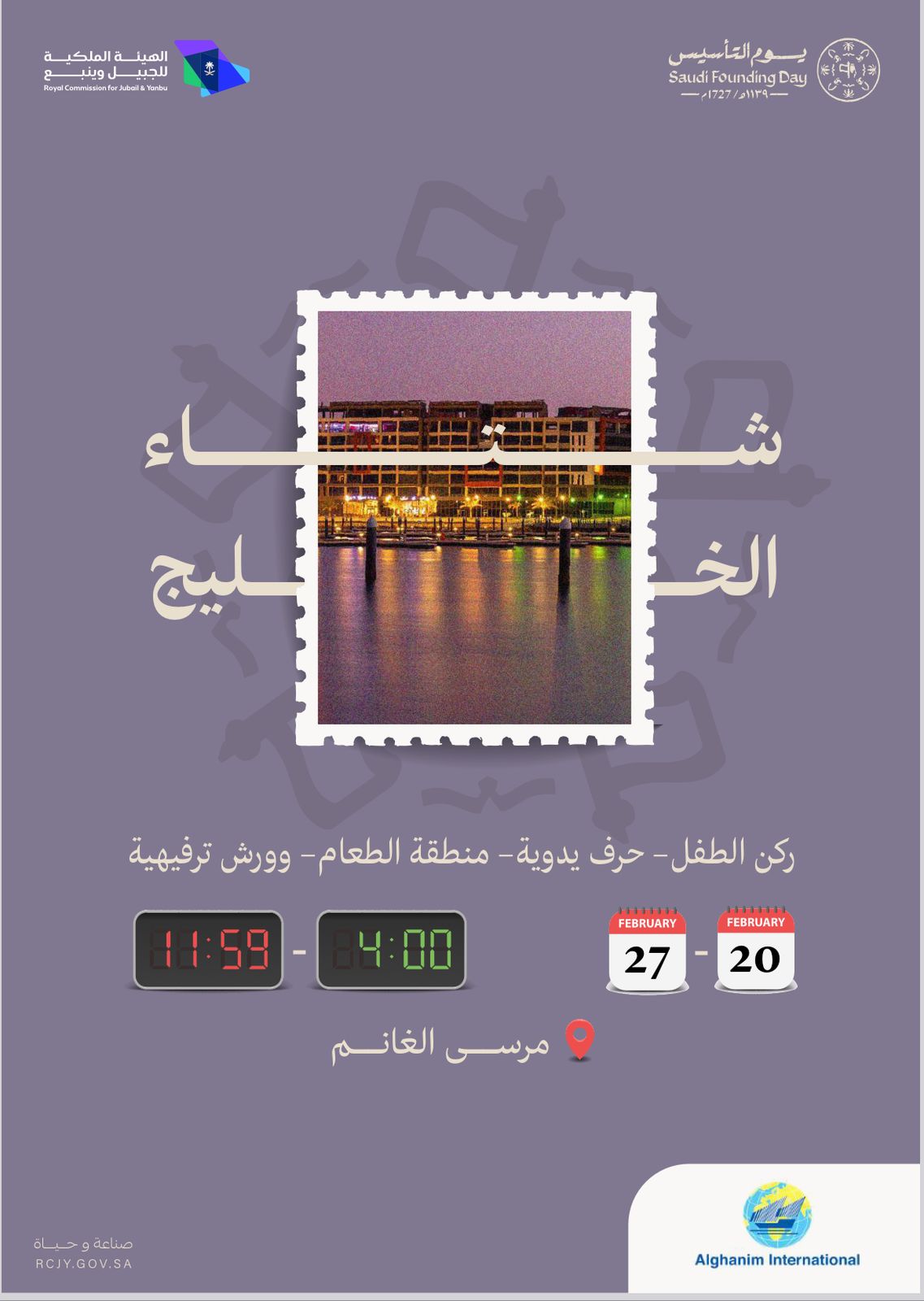 وحرصت الهيئة الملكية بالجبيل على تنوع الفعاليات في عدد من المواقع داخل مدينة الجبيل الصناعية، وضمان استهدافها جميع شرائح المجتمع من أهالي الجبيل وزوارها، وتمكين مختلف القطاعات داخل المدينة المشاركة في فعاليات يوم التأسيس.