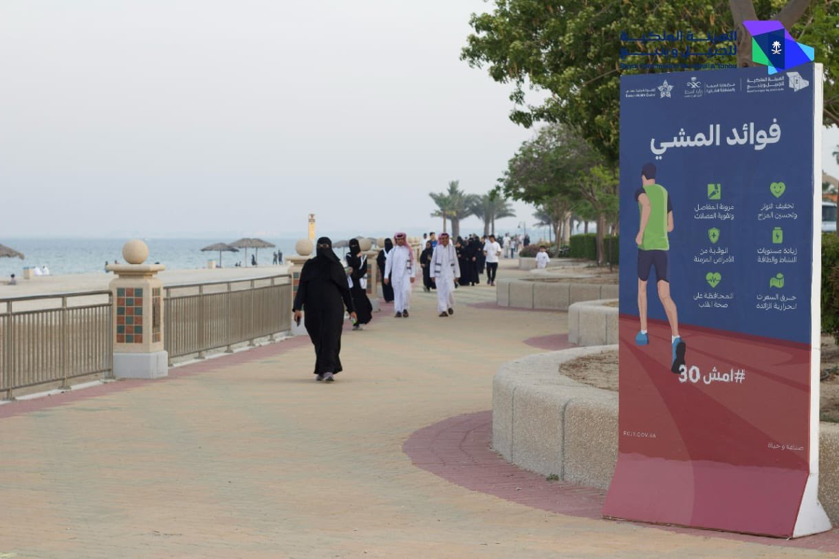انطلقت فعالية #امش30 بالتعاون مع صحة الشرقية بشاطئ الفناتير (المسرح الروماني) بمشاركة (155) رياضي ورياضية بمدينة #الجبيل_الصناعية.