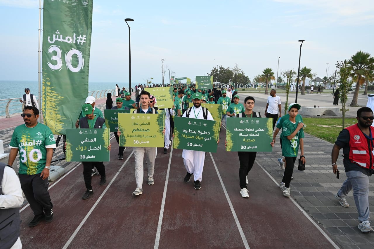 برعاية صاحب السمو الملكي الأمير سعود بن نايف بن عبدالعزيز أمير المنطقة الشرقية، وحضور وكيل إمارة المنطقة الشرقية تركي بن عبدالله التميمي، انطلقت اليوم فعالية “امش 30” في كورنيش الدمام الجنوبي، ضمن المبادرة الوطنية التي أطلقتها وزارة الصحة لتعزيز الصحة العامة ونمط الحياة الصحي.