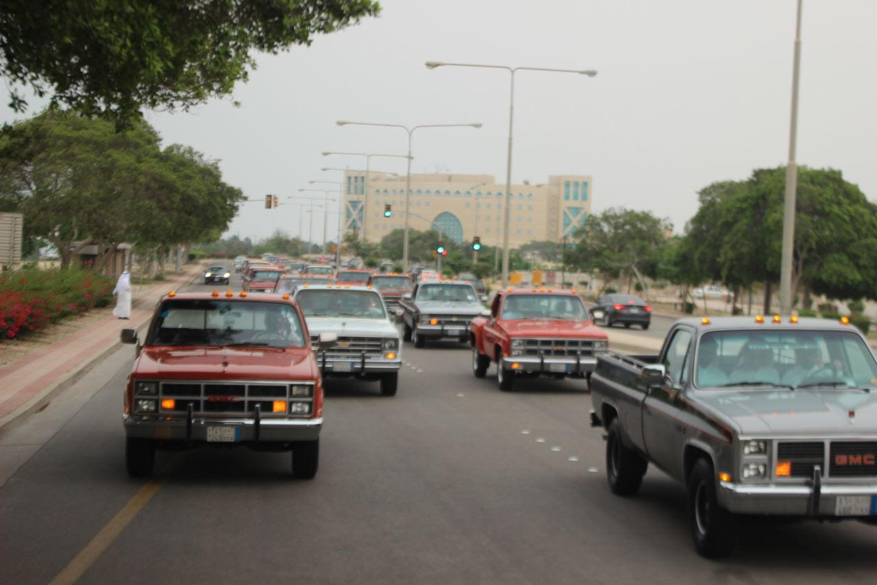 بالصور .. تجمّع لــ 47 سيارة من نوع ” جمس ، شفر ” لتبادل الخبرات بـ #الجبيل_الصناعية