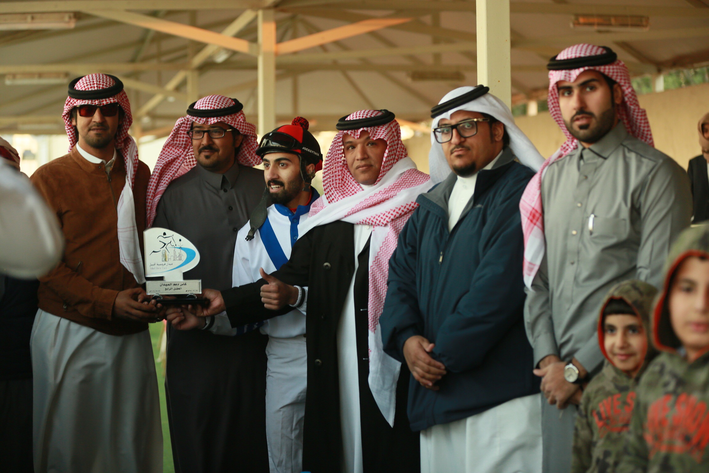 وفي نهاية الحفل، قام مدير عام ميدان الفروسية بالجبيل الأستاذ راشد القحطاني بتسليم كأس الحفل الرابع لمالك الفرس الفائزة (باهضة) وهم أبناء عبدالمحسن القحطاني.