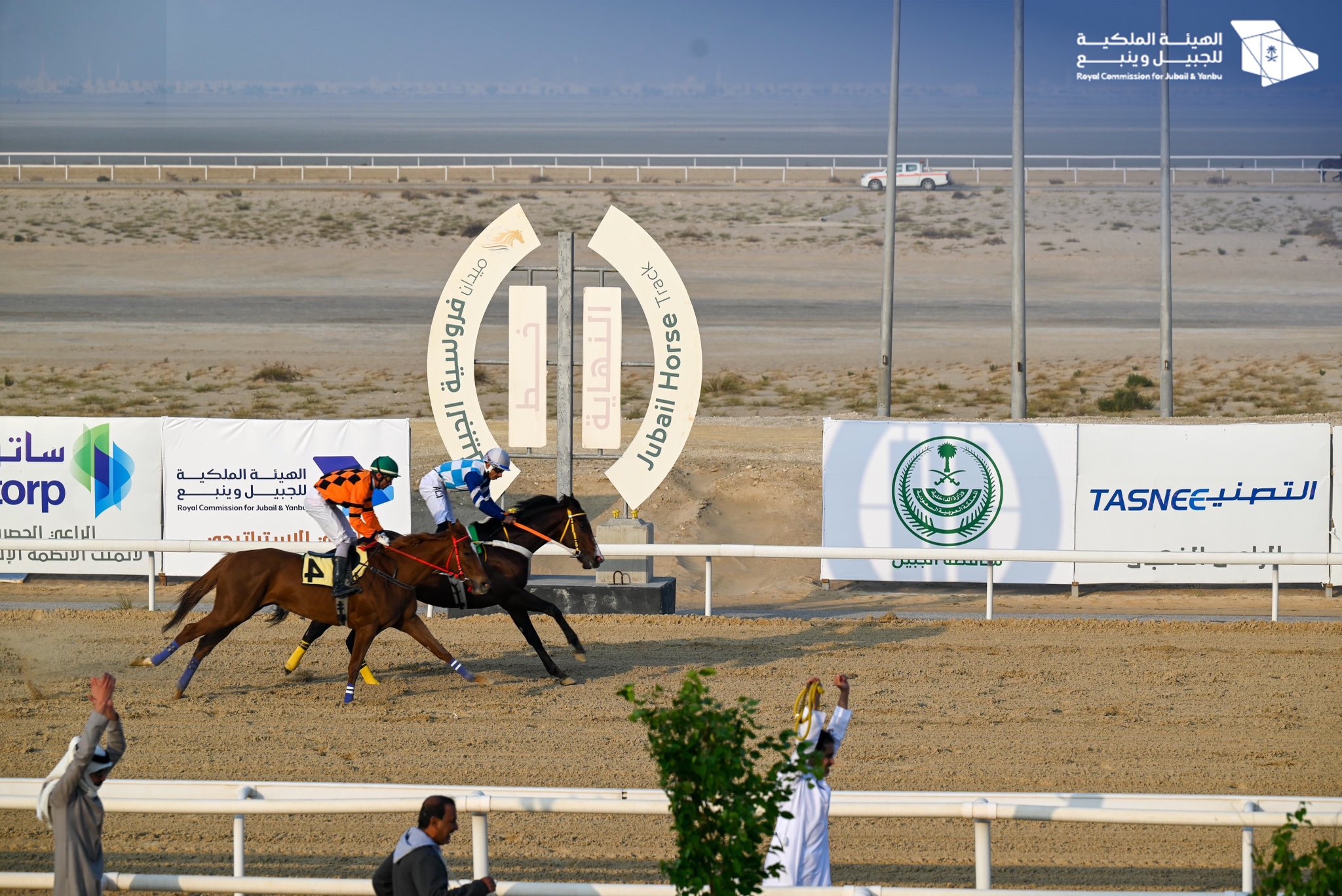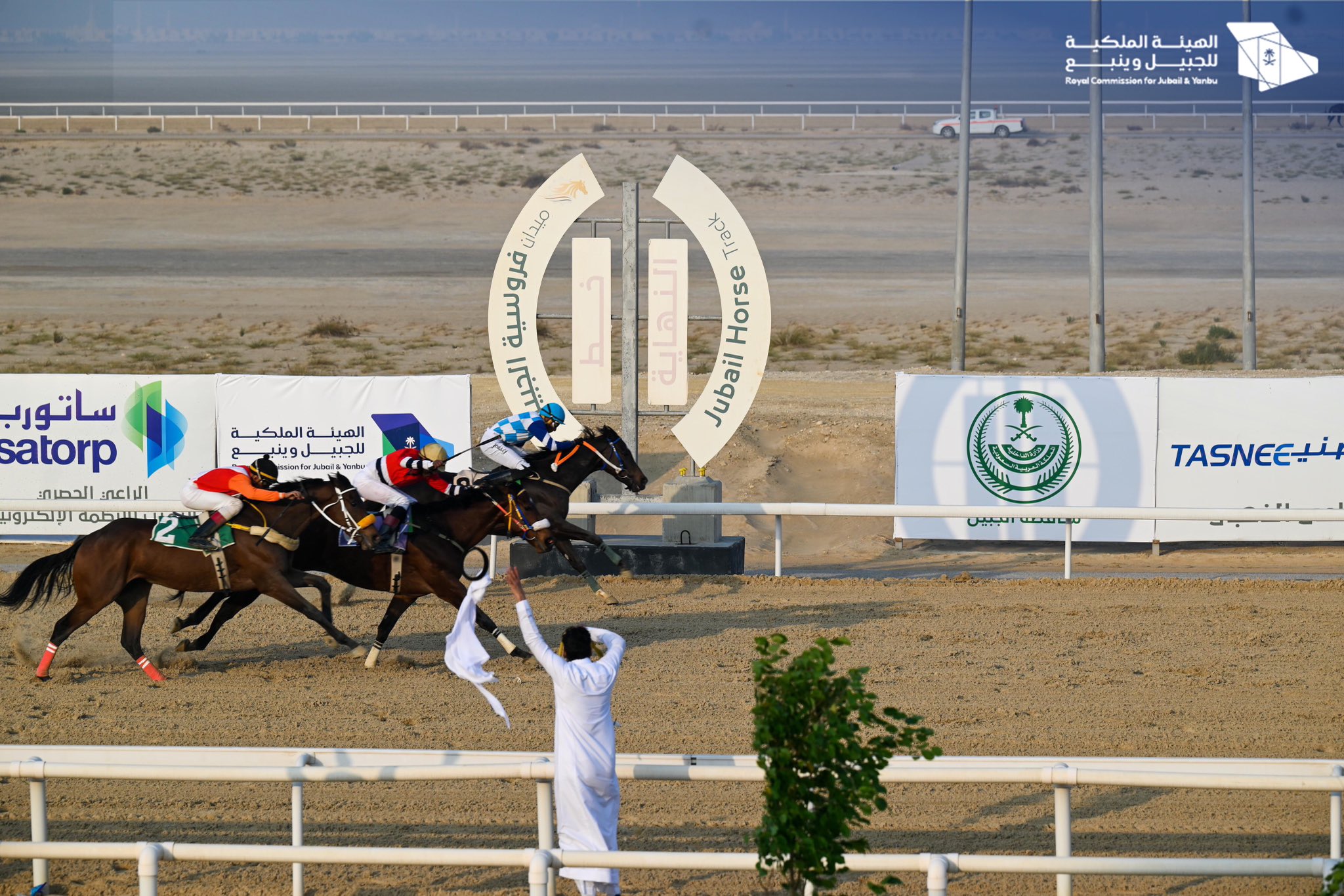 ضمن سباقات الخيل للحفل الختامي الثاني عشر بميدان فروسية الجبيل وبحضور محافظ الجبيل أ. منصور الداود سلّم مدير عام الإدارة العامة للخدمات المساندة بالهيئة الملكية بالجبيل أ. ذعار المطيري كأس #الهيئة_الملكية_بالجبيل لمالك الجواد الفائز دواس الدوسري.