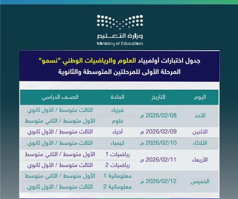 تبدأ غداً المرحلة الأولى لاختبارات أولمبياد العلوم والرياضيات الوطني #نسمو لطلاب وطالبات #تعليم_الشرقية.
