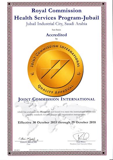 وجاء حصول هذا الاعتماد بعد زيارة استمرت لمدة خمسة أيام، لفريق من الخبراء الدوليين من ذوي الخبرة العالية والمعتمدين دولياً من اللجنة للتأكد من مطابقة كافة المعايير في برنامج الخدمات الصحية للمعايير الدولية في القيادة والجودة والرعاية الصحية والأهداف العالمية لسلامة المريض وحقوق المرضى، وتقييم المرضى، بعد أن تم التأكد على أن جميع الكوادر الطبية والفنية والإدارية ببرنامج الخدمات الصحية للهيئة الملكية بالجبيل ملتزمة بتطبيق المعايير والتوصيات الصحية الدولية في كافة مرافق تقديم الرعاية الطبية من التشخيص والعلاج والتأهيل .