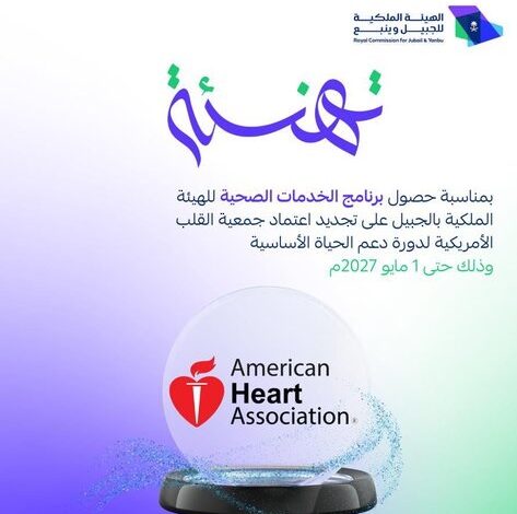 برنامج الخدمات الصحية للهيئة الملكية بالجبيل يحصل على تجديد اعتماد جمعية القلب الأمريكية (AHA)