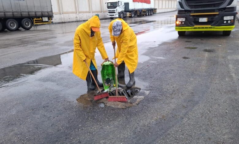 وأوضح المهندس بادي القحطاني بأن الفرق الميدانية باشرت أعمال سحب مياه الأمطار ومعالجة تجمعاتها فور هطولها إلى جانب تنفيذ أعمال تنظيف فتحات التصريف والمناهيل ومتابعة المواقع التي جرى رصدها مسبقا حتى انتهاء الحالة المطرية بشكل كامل.