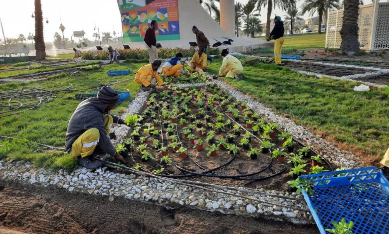 بلدية رأس تنورة تزين طرق وميادين وحدائق المحافظة بـ 600 ألف زهرة و 3 آلاف شجرة