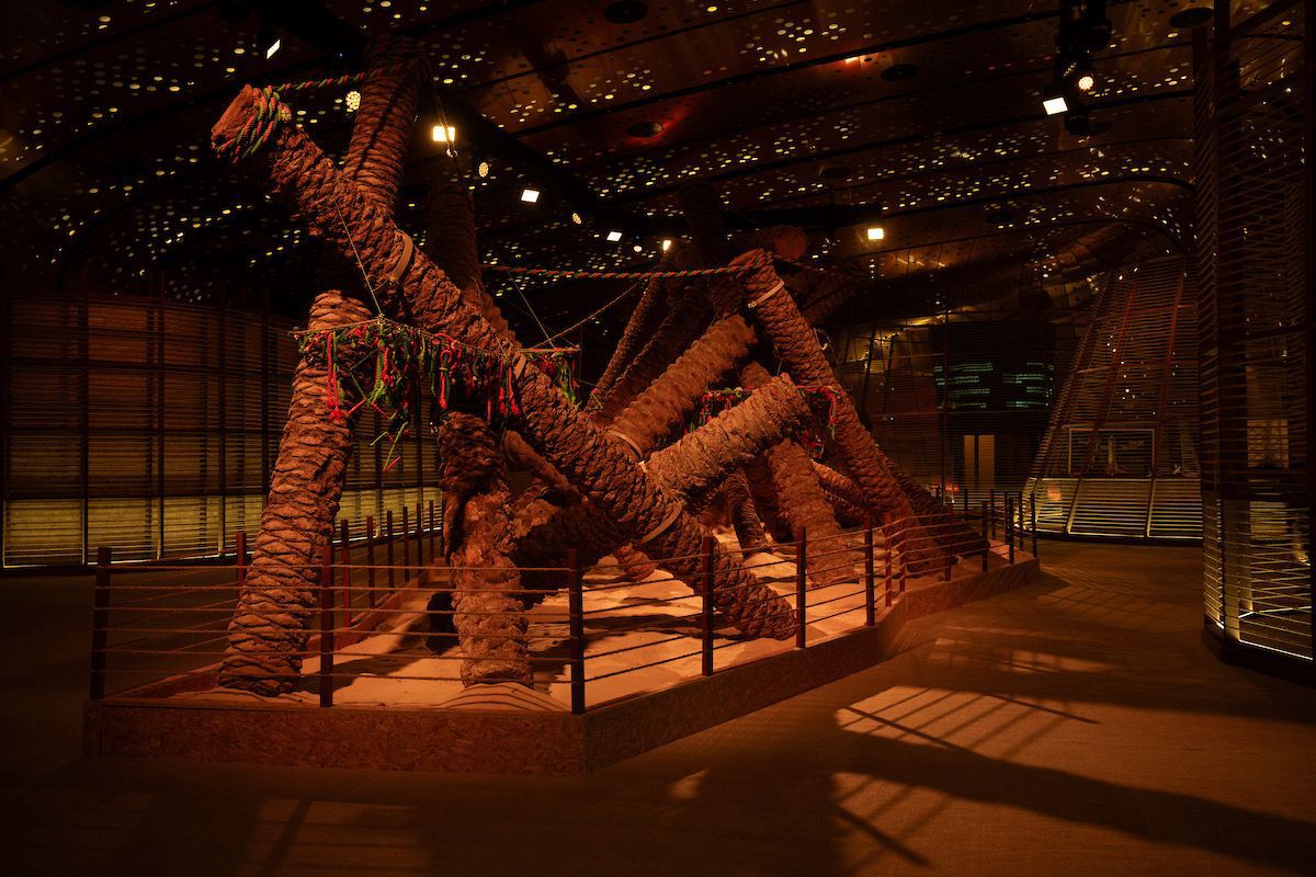 ويضم المعرض 15 عملًا فنيًا لـ 25 فنانًا من داخل المملكة وخارجها، بإشراف القيّمين الفنيين “سامر يماني” و”رزان مصري”، في تجربة فنية تستكشف حضور النخيل في الذاكرة، وتعيد قراءتها من منظورٍ جمالي يجمع بين الفن والتراث وبين الماديّ والرمزيّ، إذ يعكس تصميم المعرض دلالات متعددة من خلال فضاءات فنية تتداخل فيها عناصر النخلة من خشبٍ وحبالٍ وليف، لتصوغ مشهدًا بصريًا يشبه العريش الذي يظلل الذاكرة.