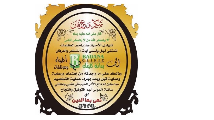 انا اليوم انصح الجميع بعمل العمليه والتخلص من داء البدانه كما اسأل الله ان يُكرمني من واسع فضله لكي اعملُها لجميع المحتاجين على حسابي الخاص والنصيحه الذهبيه إجراؤها في العيادات المخصصة لذلك التي تتوفر لديها جميع الأمكانيات والكوادر الطبيه، شكرًا من القلب بدانه كلينيك.