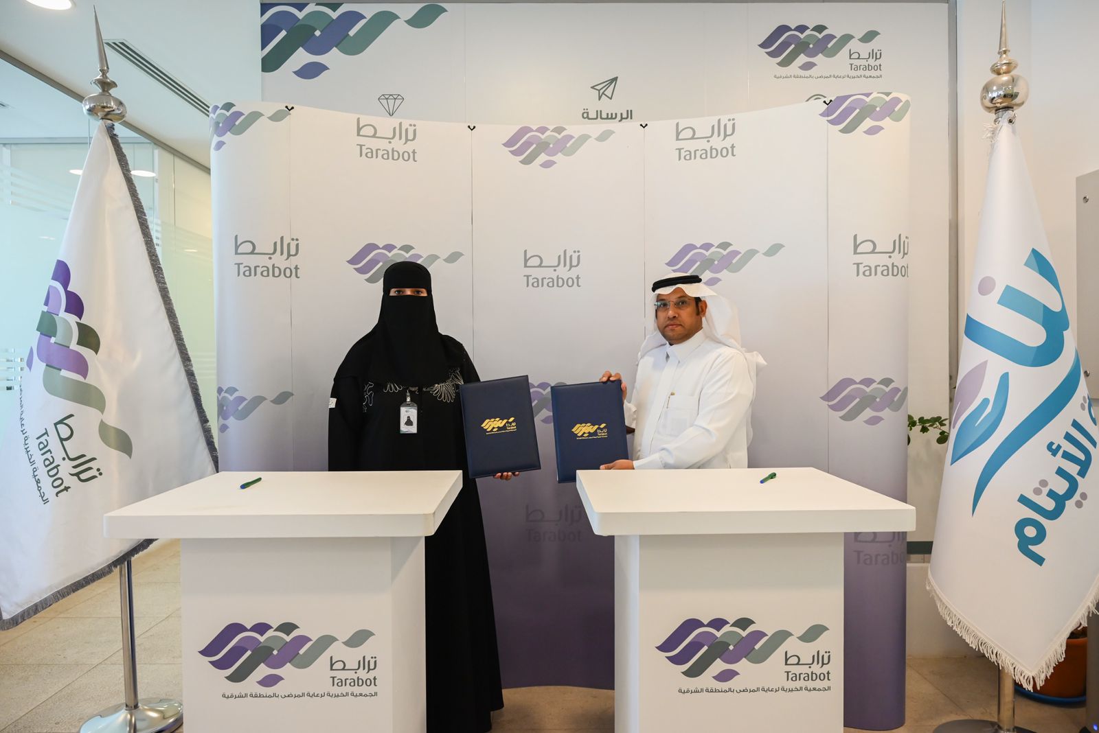 وقعت الجمعية الخيرية لرعاية المرضى بالمنطقة الشرقية ” ترابط ” ممثلة برئيسها التنفيذي الدكتورة فاطمة بنت عبدالباقي البخيت اتفاقية تعاونية مع الجمعية الخيرية لرعاية الأيتام بالمنطقة الشرقية (بناء) ممثلة بالرئيس التنفيذي الأستاذ /عبدالله بن راشد الخالدي للتعاون في تقديم خدمات نقل المرضى من خلال التاكسي الخيري الذي يهدف لتمكين الأيتام اقتصادياً ويعزز استقرارهم المادي.