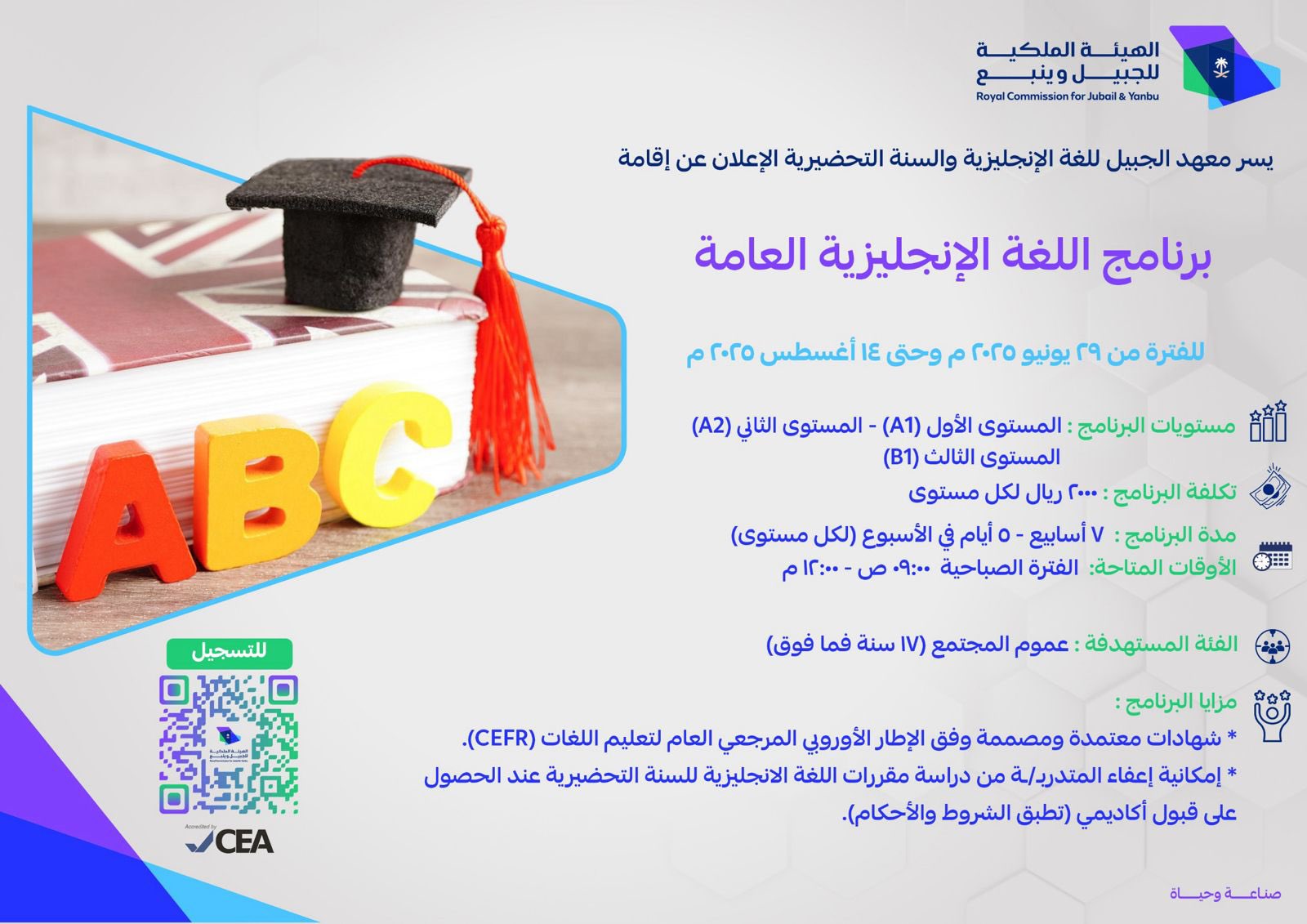 تعليم الهيئة الملكية بالجبيل يعلن بدء التسجيل في برامج اللغة الإنجليزية