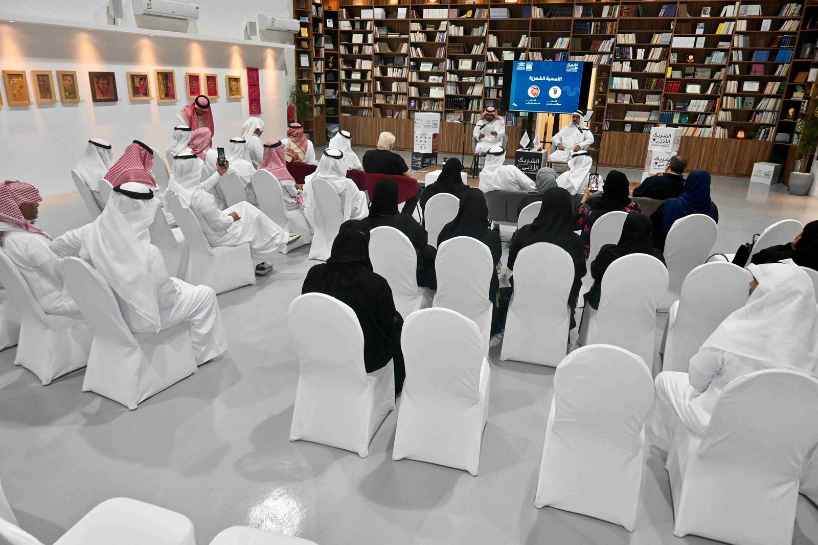 كما تشارك الجمعية في مبادرة الشريك الأدبي في نسخته الخامسة ، فقد قدم محاضرة العقل في المجتمع، العقل في النص مدخل الى كتاب النفس والرواية للأستاذ عبدالله الوصالي، والأمسية الشعرية للشعراء عبدالله بوخمسين والشاعر شيخ صنعاني، وأمسية الفن والجمال أمسية شعرية حوارية بين الغاية والظلال للشاعر عامر بن فهد، وأدار الحوار الكاتبة نورة المغربي.