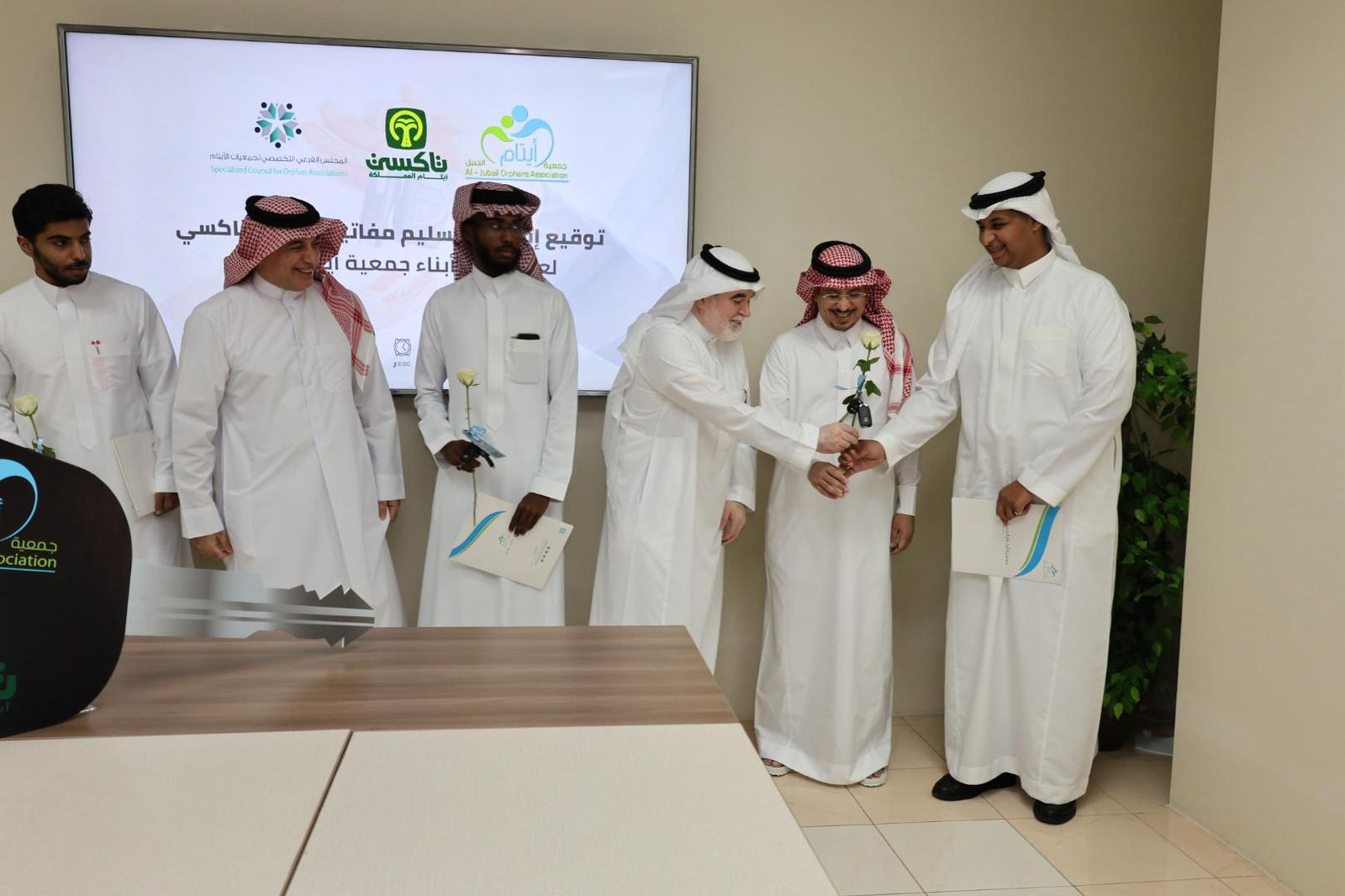 وفي إطار هذه الشراكة، أقيم لقاء بمقر جمعية أيتام الجبيل وتم تسليم السيارات لـ ٥ من أبناء الجمعية بحضور أعضاء مجلس الإدارة وعدد من أعضاء الجمعية العمومية وبعض الإعلاميين، الذين عبّروا عن فخرهم واعتزازهم بهذه الخطوة النوعية لتمكين الأيتام.