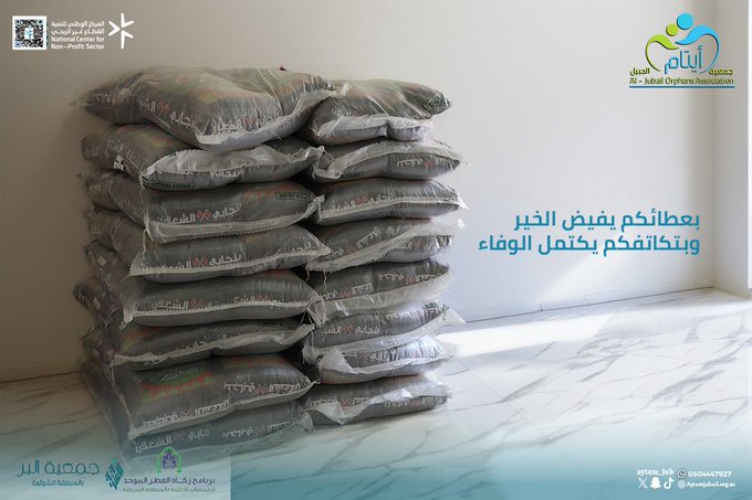 وقالت عبر حسابها على منصة “إكس”: استمرارًا للجهود المشتركة بين #جمعية_أيتام_الجبيل وشركائها، وبدعم من #جمعية_البر_بالمنطقة_الشرقية، تم توزيع أكياس زكاة الفطر على الأسر المستحقة ضمن برنامج زكاة الفطر الموحد.
