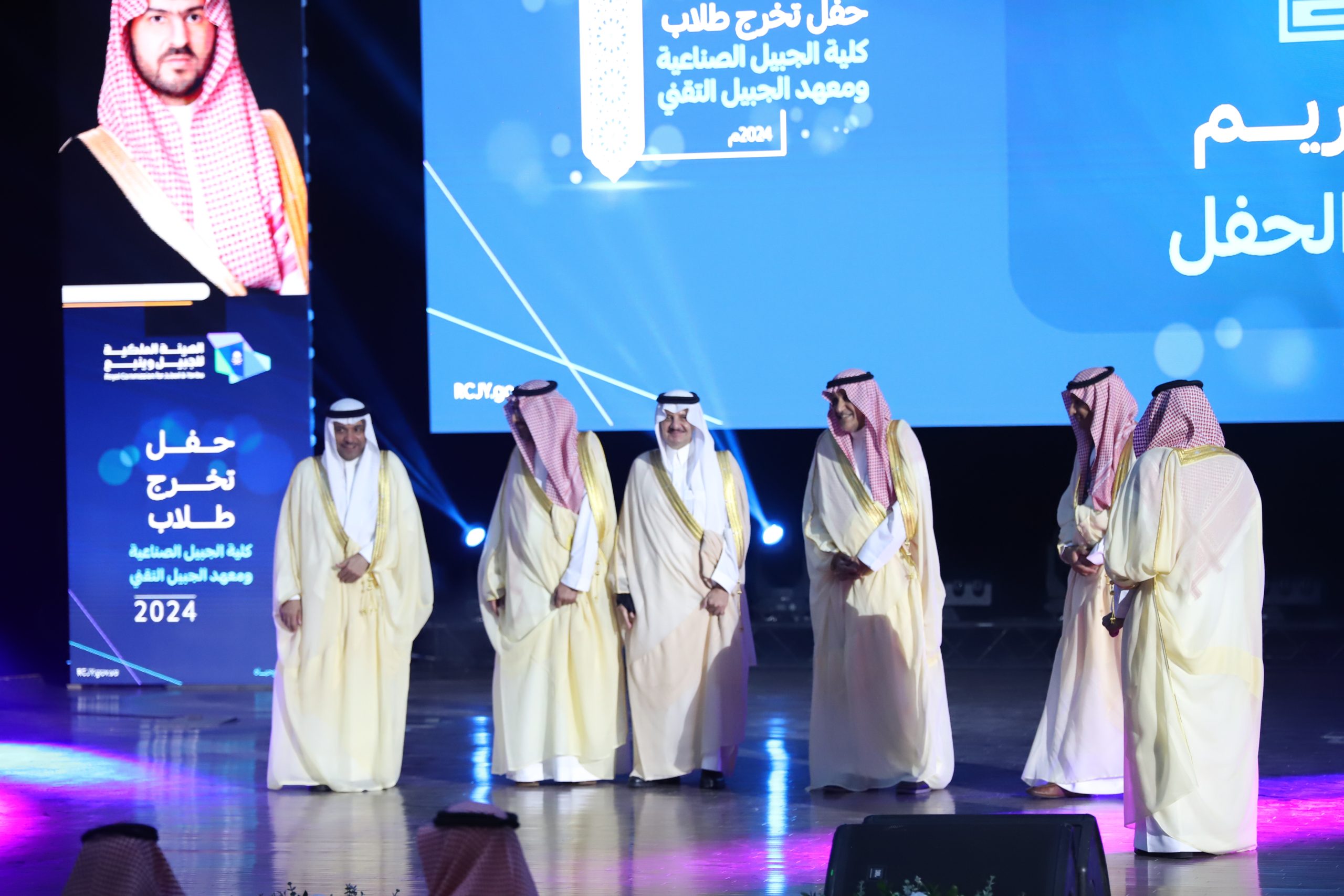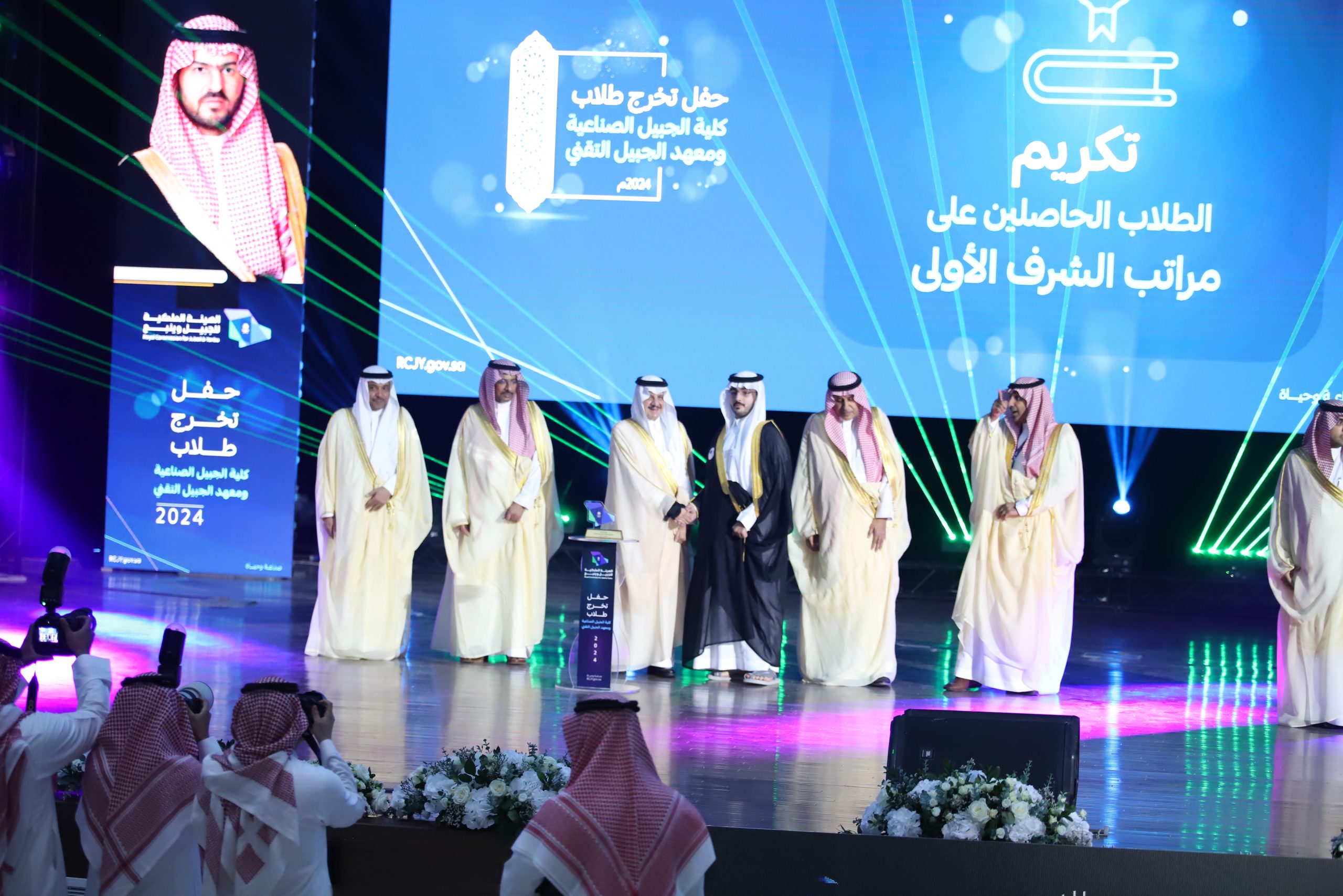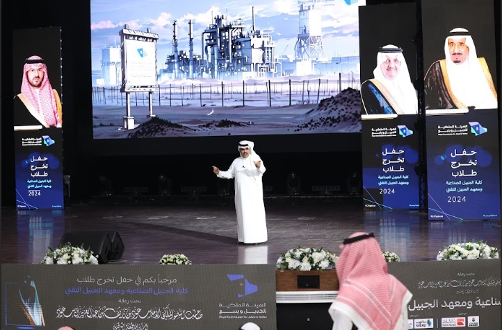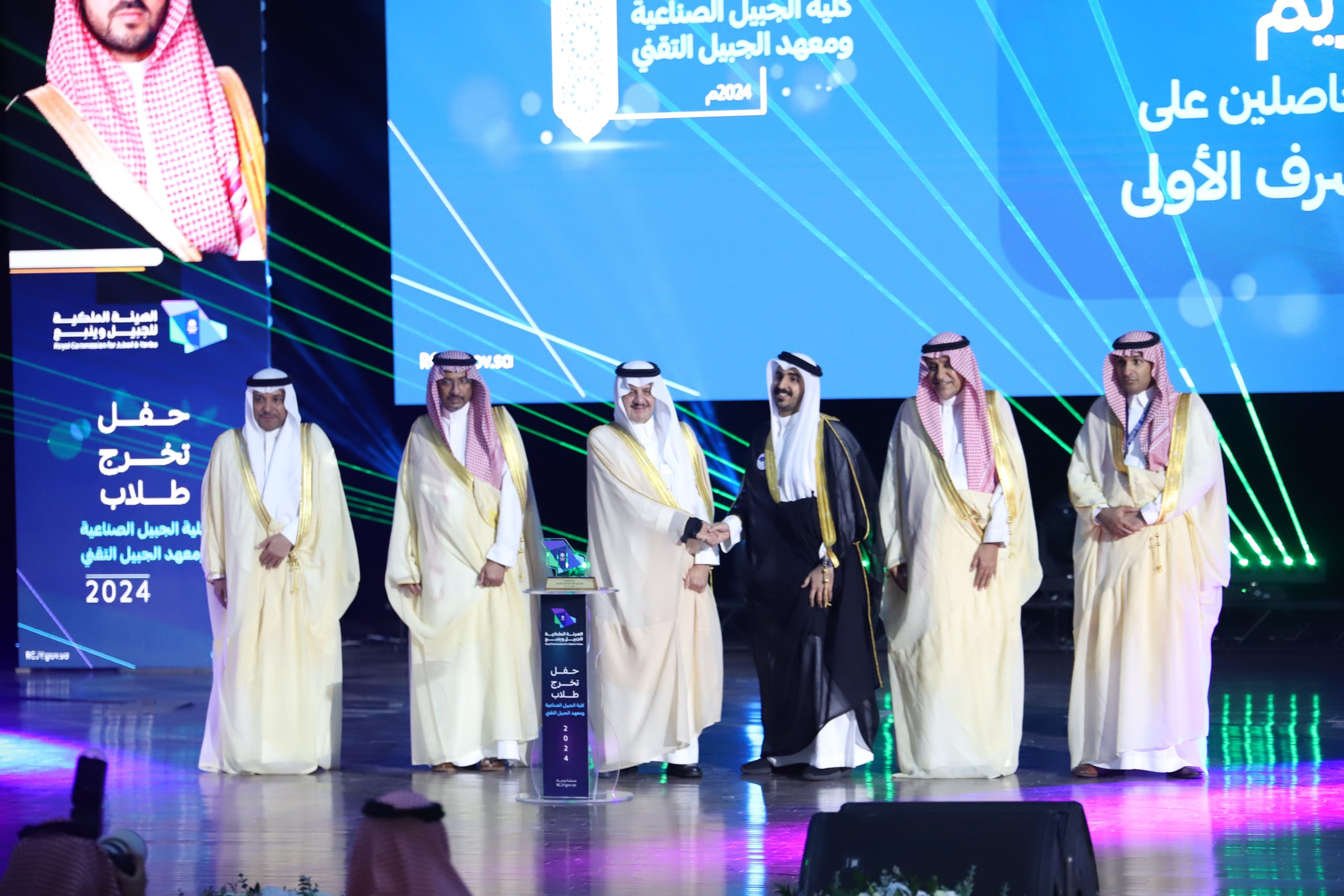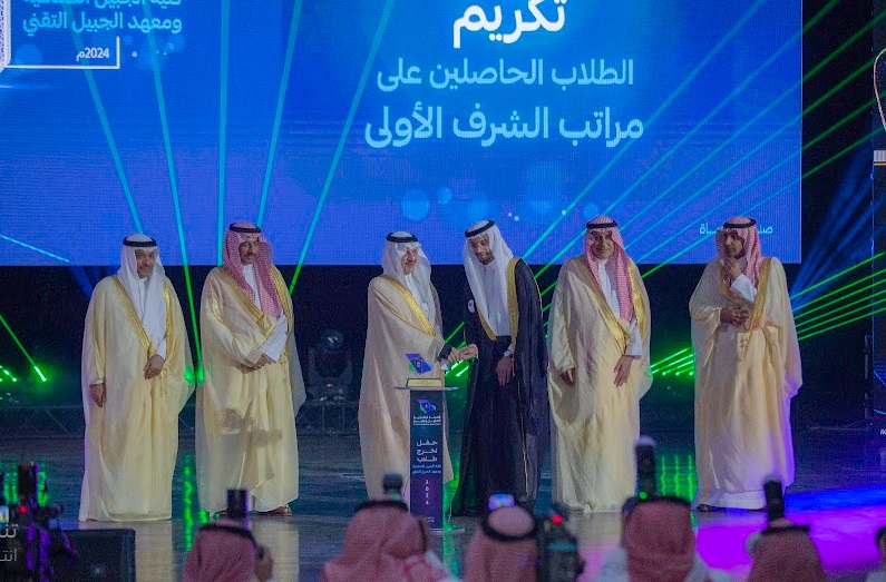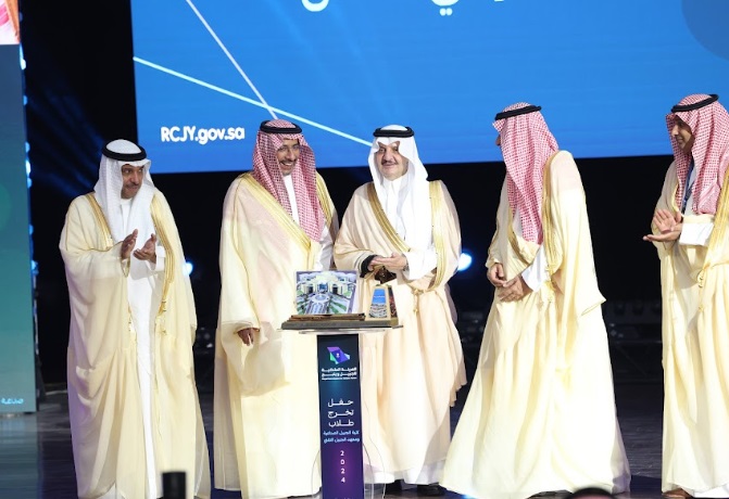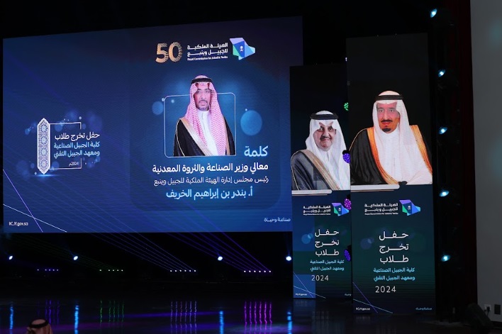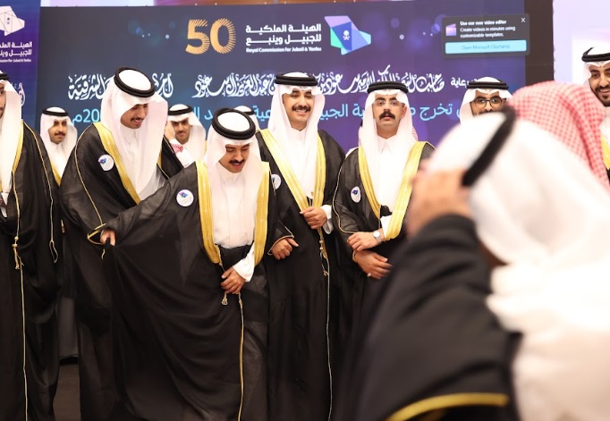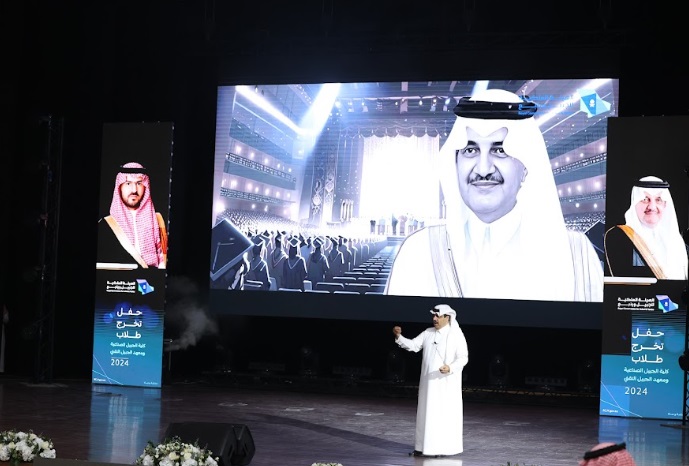 ورعى صاحب السمو الملكي الأمير سعود بن نايف بن عبد العزيز أمير الشرقية مساء الأحد حفل تخرج طلاب كلية الجبيل الصناعية ومعهد الجبيل التقني 2024م والبالغ عددهم (2893) خريج بحضور معالي وزير الصناعة والثروة المعدنية رئيس مجلس إدارة الهيئة الملكية للجبيل وينبع الأستاذ بندر بن إبراهيم الخريف ومعالي رئيس الهيئة الملكية للجبيل وينبع المهندس خالد بن محمد السالم، بمسرح المدينة الجامعية بمدينة الجبيل الصناعية.