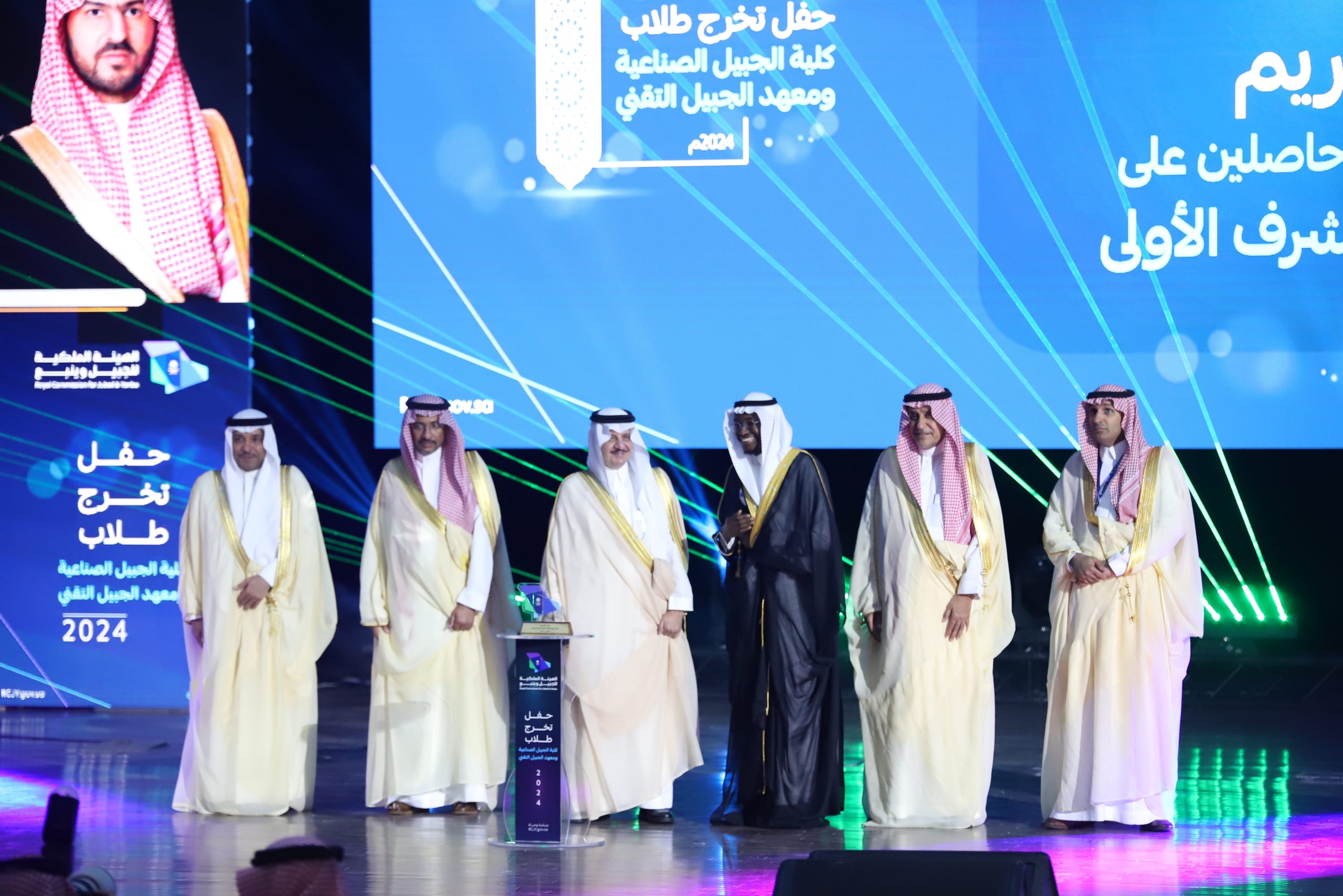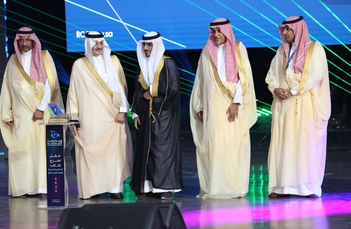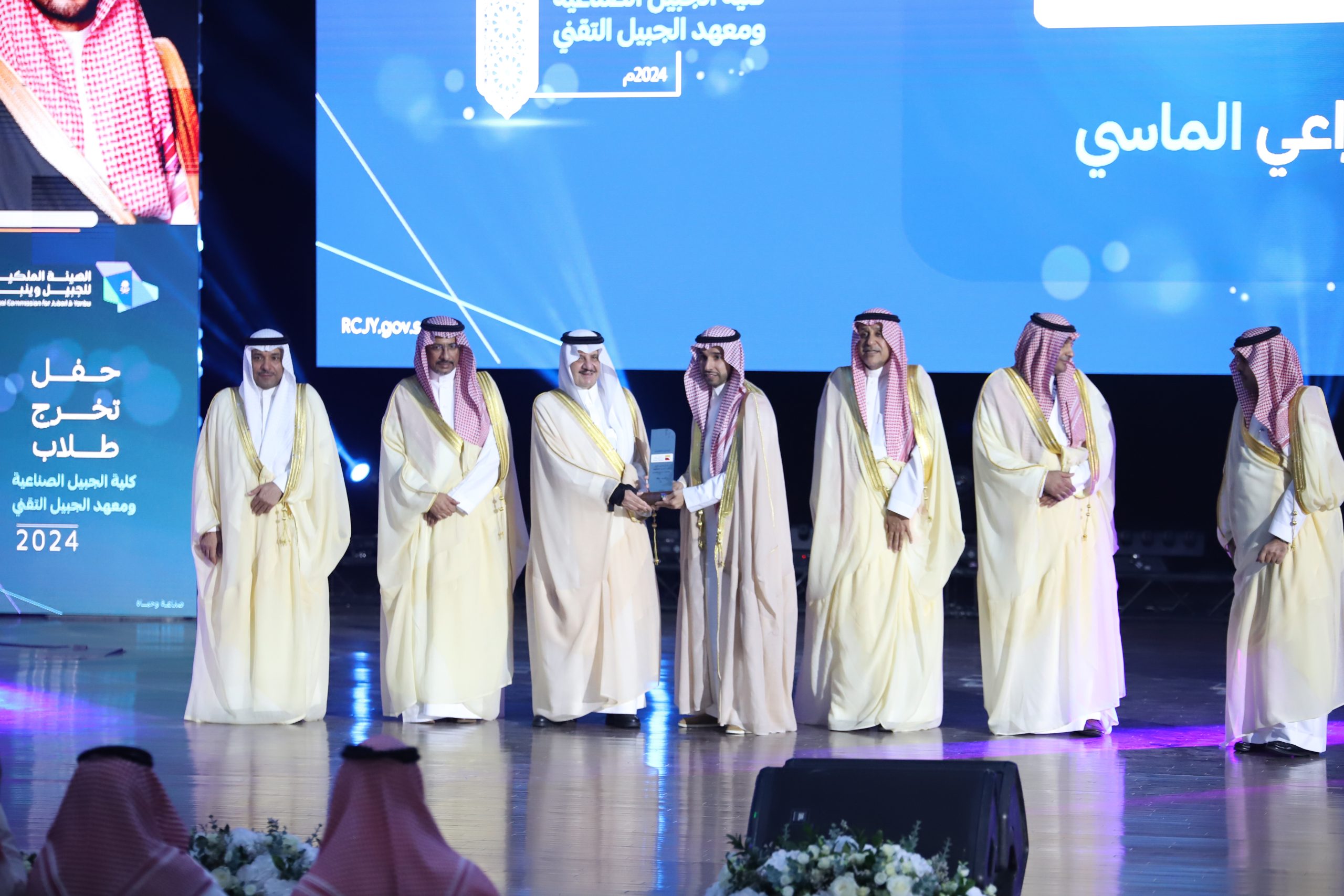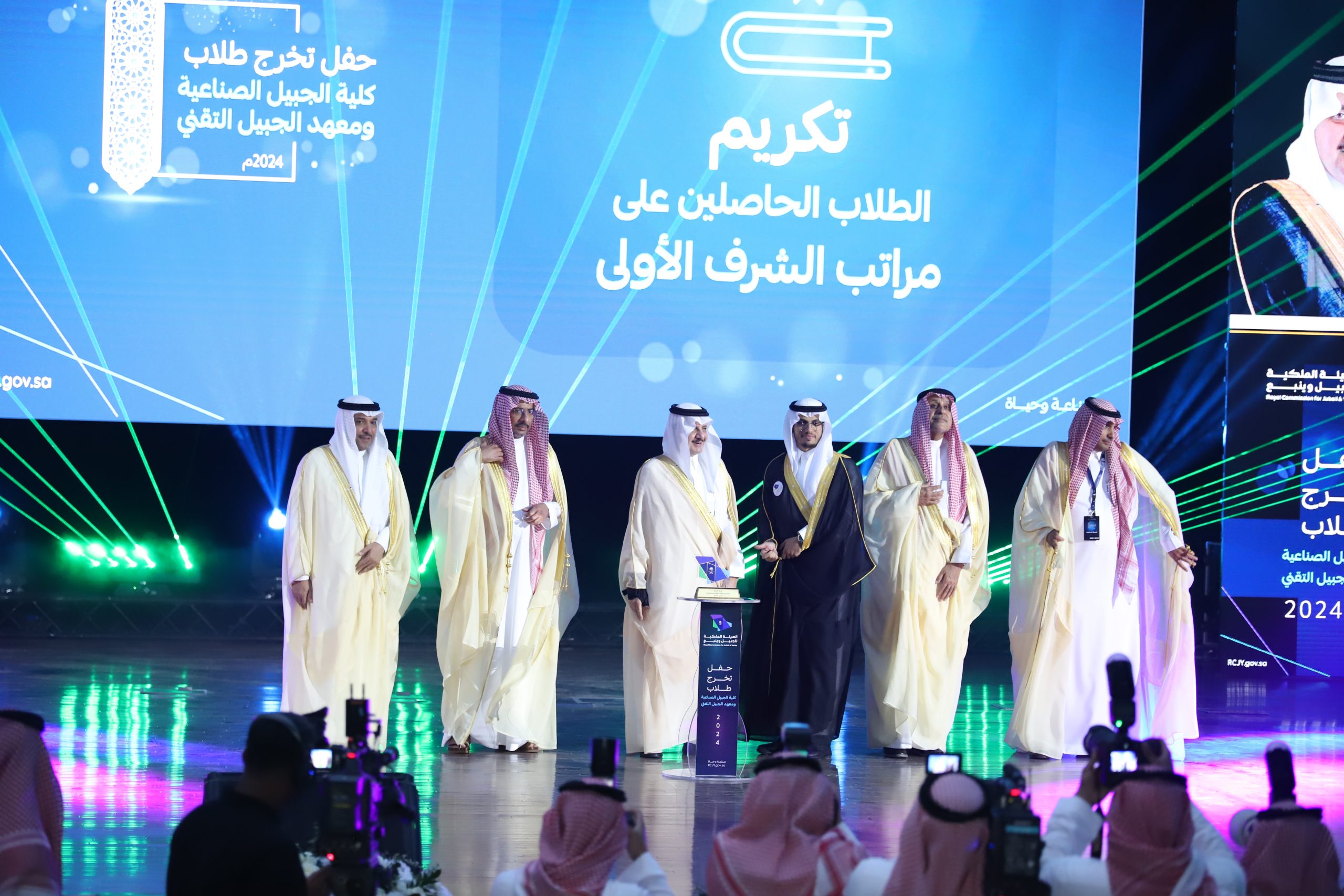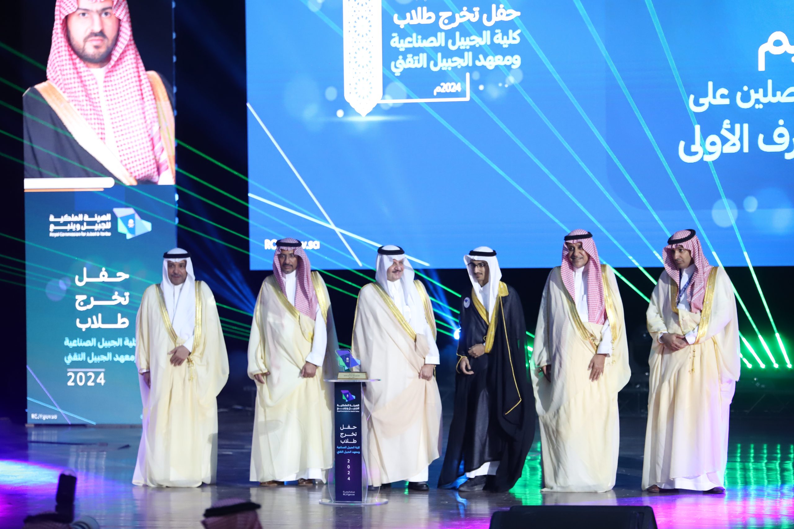 ورعى صاحب السمو الملكي الأمير سعود بن نايف بن عبد العزيز أمير الشرقية مساء الأحد حفل تخرج طلاب كلية الجبيل الصناعية ومعهد الجبيل التقني 2024م والبالغ عددهم (2893) خريج بحضور معالي وزير الصناعة والثروة المعدنية رئيس مجلس إدارة الهيئة الملكية للجبيل وينبع الأستاذ بندر بن إبراهيم الخريف ومعالي رئيس الهيئة الملكية للجبيل وينبع المهندس خالد بن محمد السالم، بمسرح المدينة الجامعية بمدينة الجبيل الصناعية.