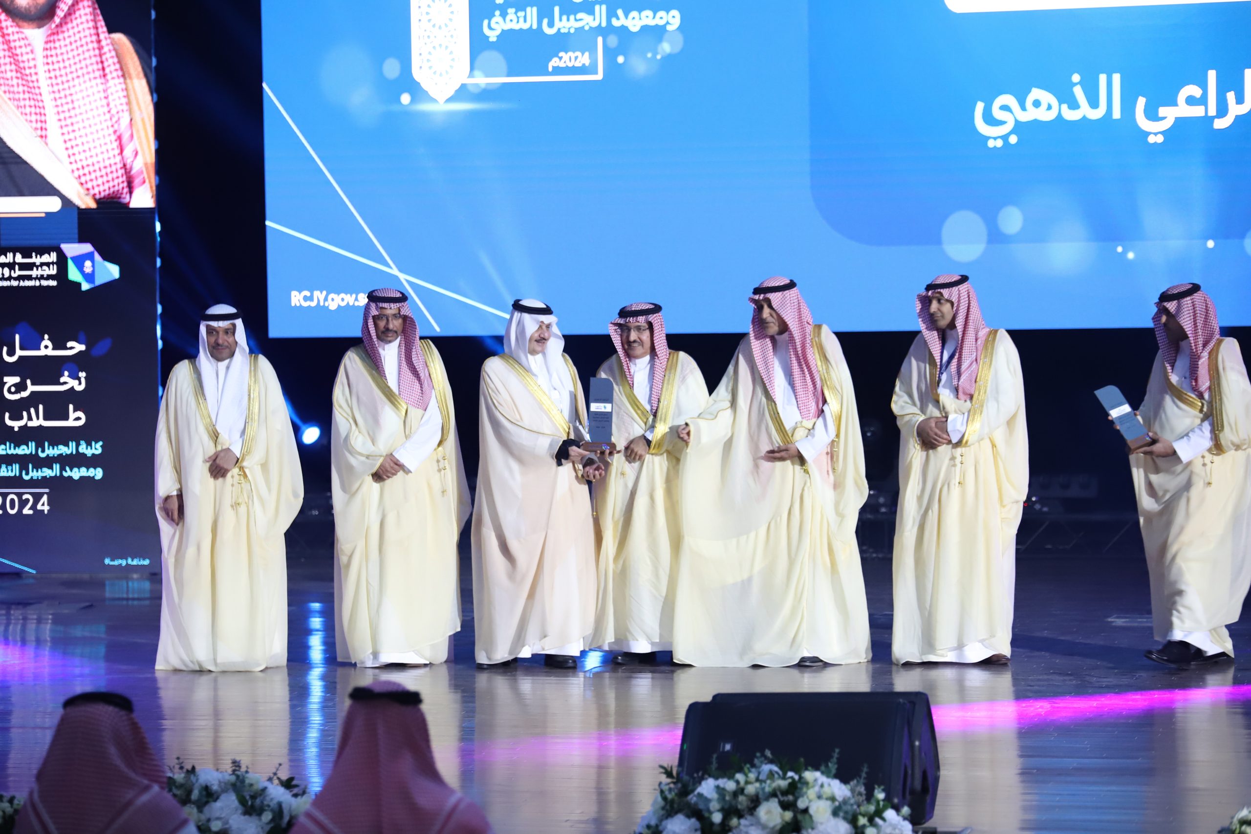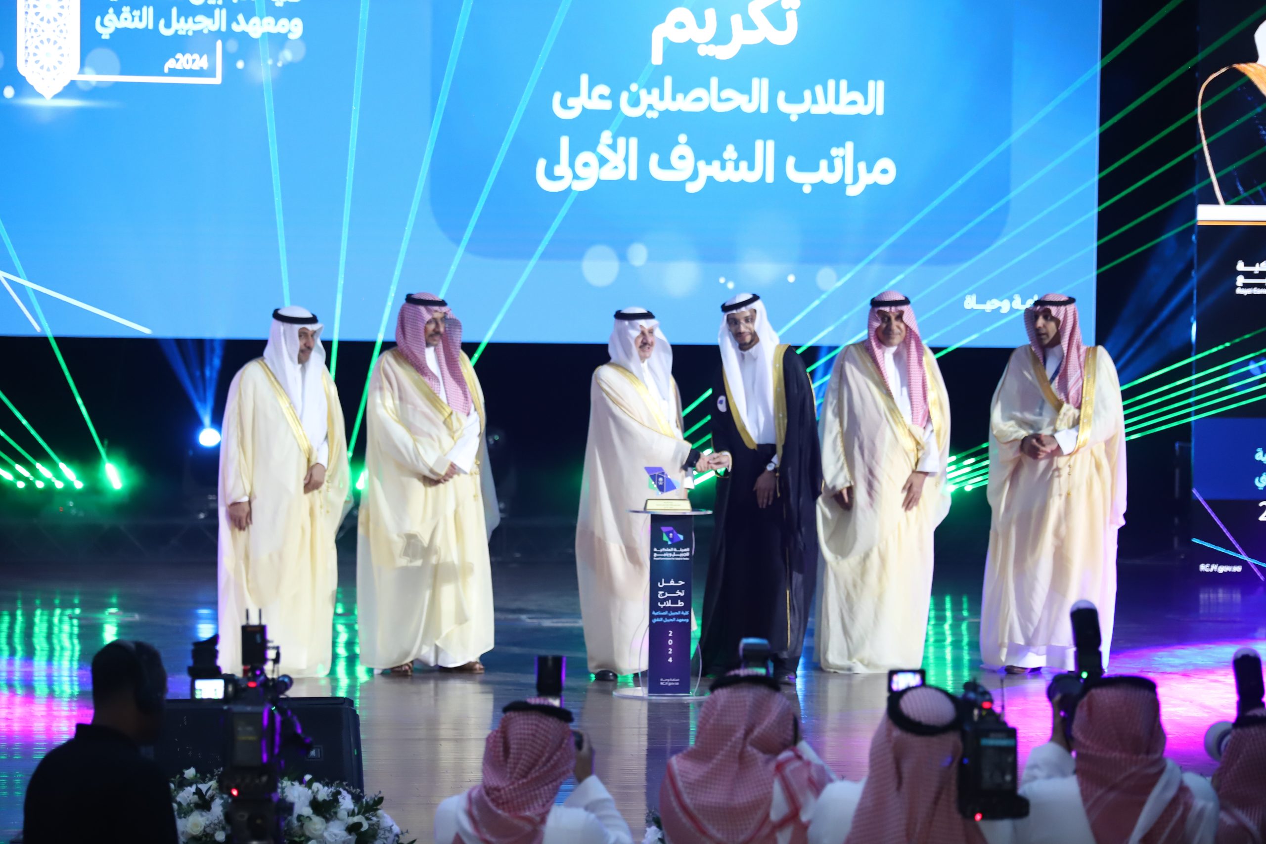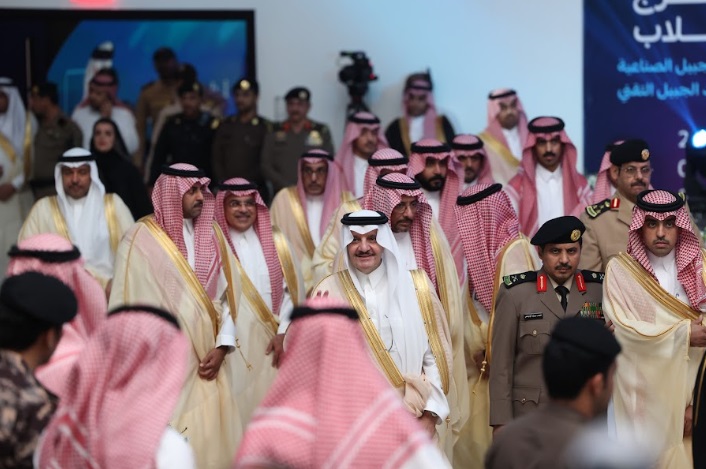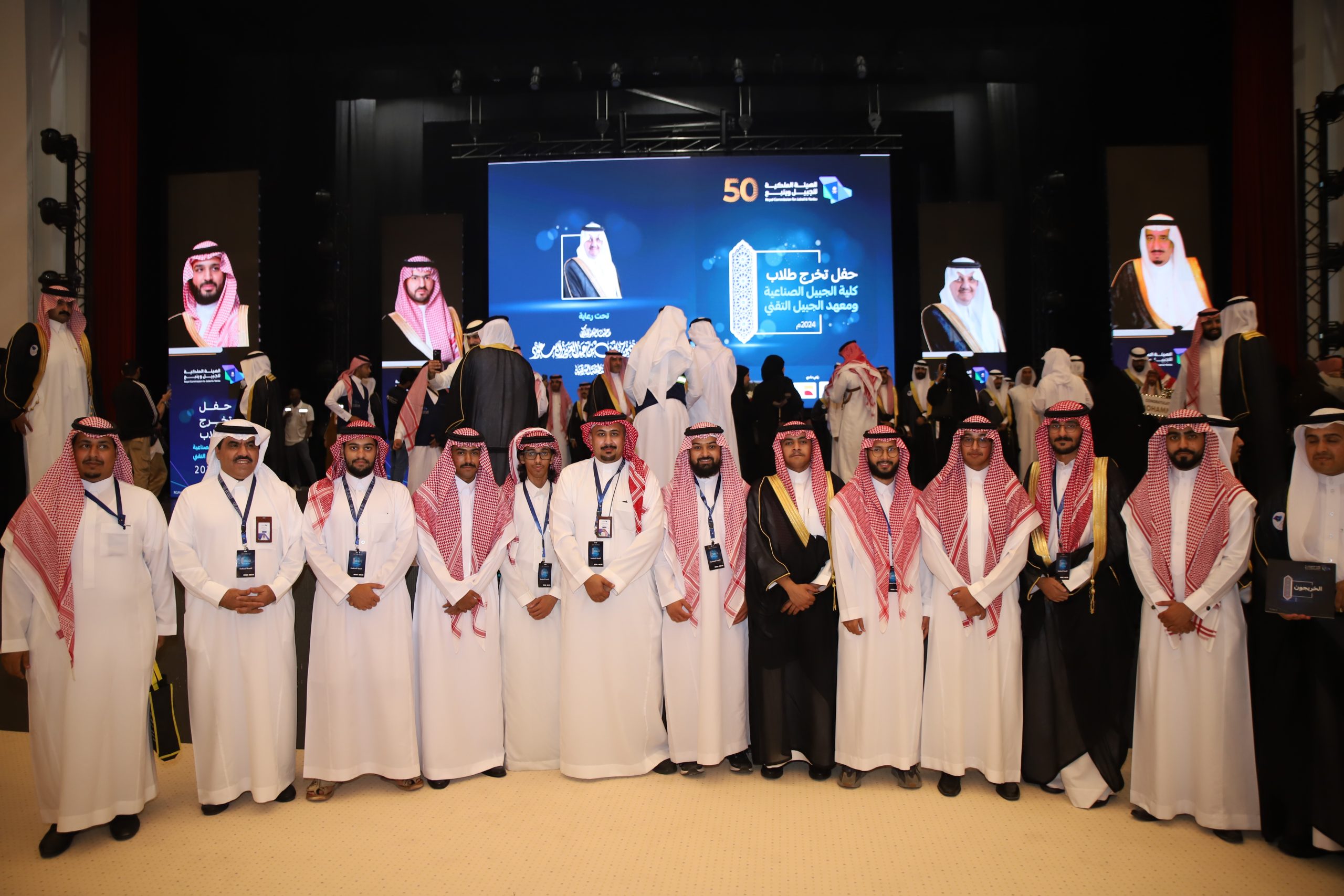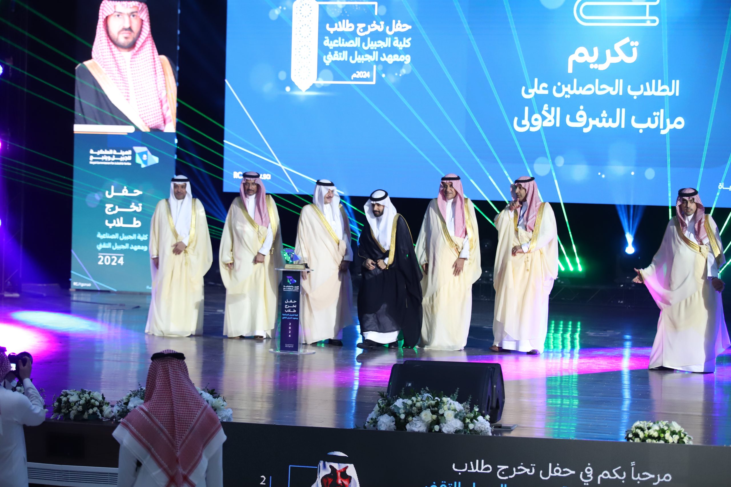 ورعى صاحب السمو الملكي الأمير سعود بن نايف بن عبد العزيز أمير الشرقية مساء الأحد حفل تخرج طلاب كلية الجبيل الصناعية ومعهد الجبيل التقني 2024م والبالغ عددهم (2893) خريج بحضور معالي وزير الصناعة والثروة المعدنية رئيس مجلس إدارة الهيئة الملكية للجبيل وينبع الأستاذ بندر بن إبراهيم الخريف ومعالي رئيس الهيئة الملكية للجبيل وينبع المهندس خالد بن محمد السالم، بمسرح المدينة الجامعية بمدينة الجبيل الصناعية.