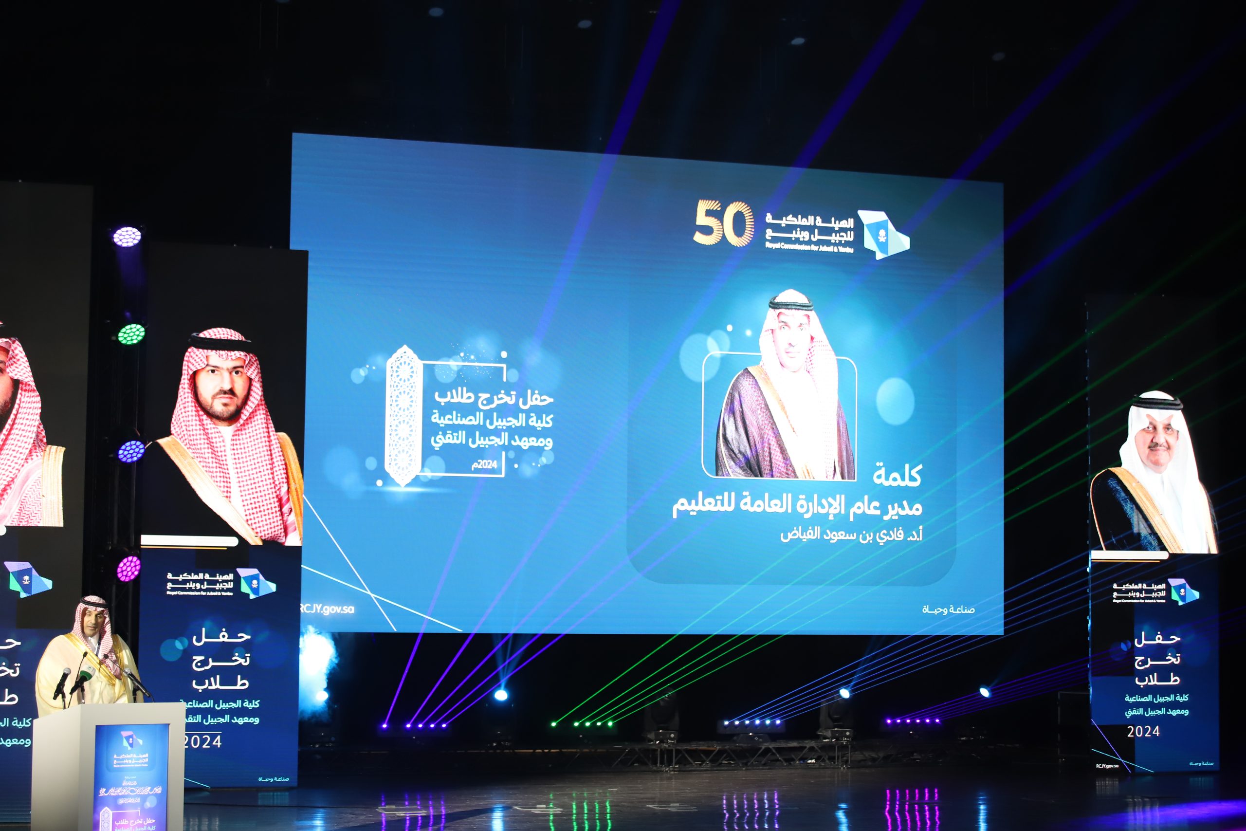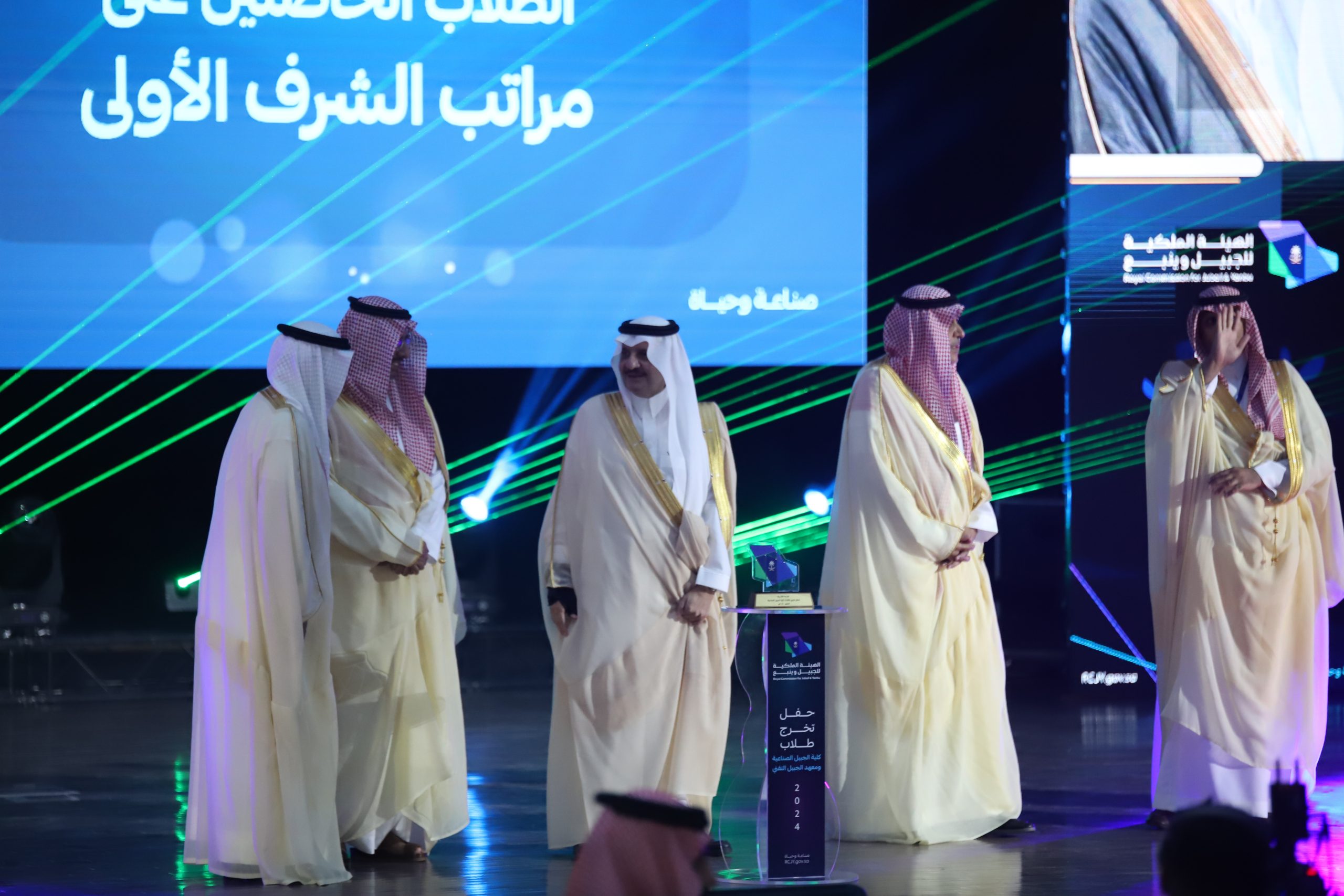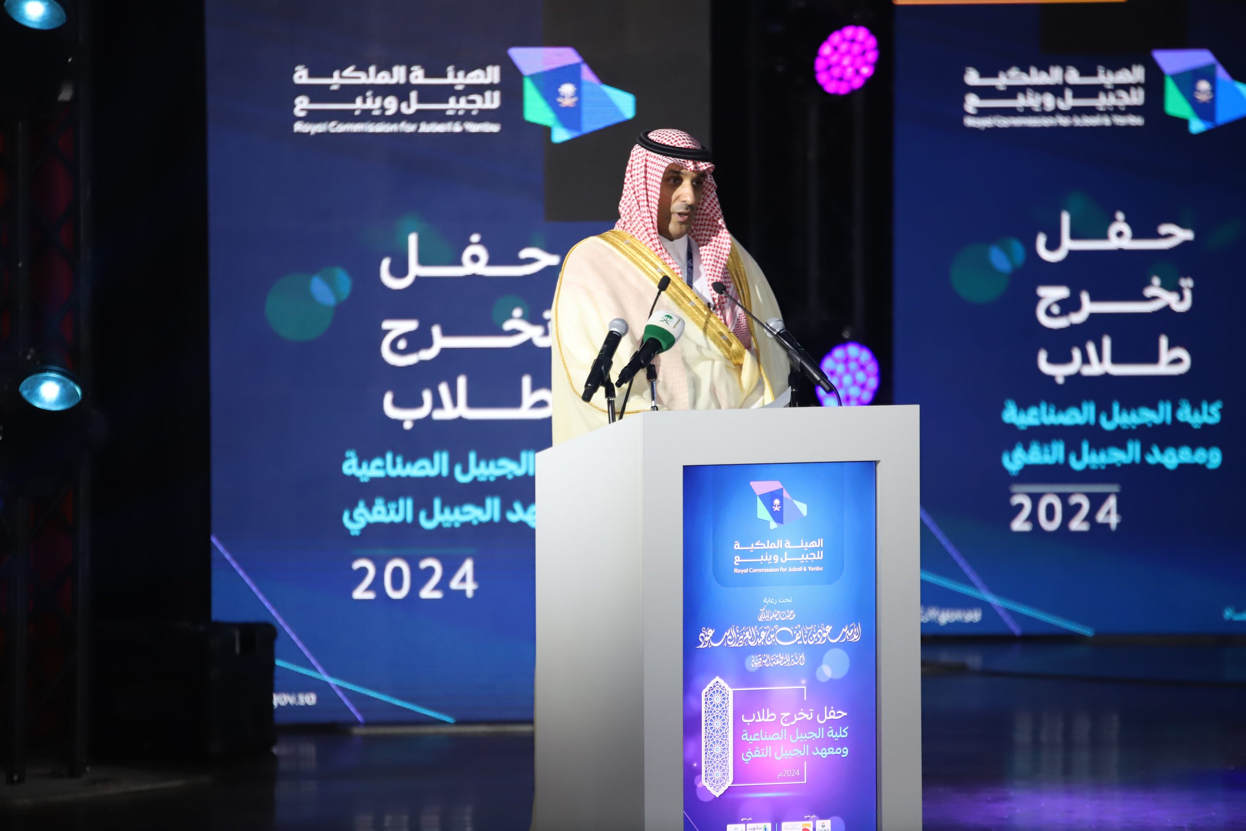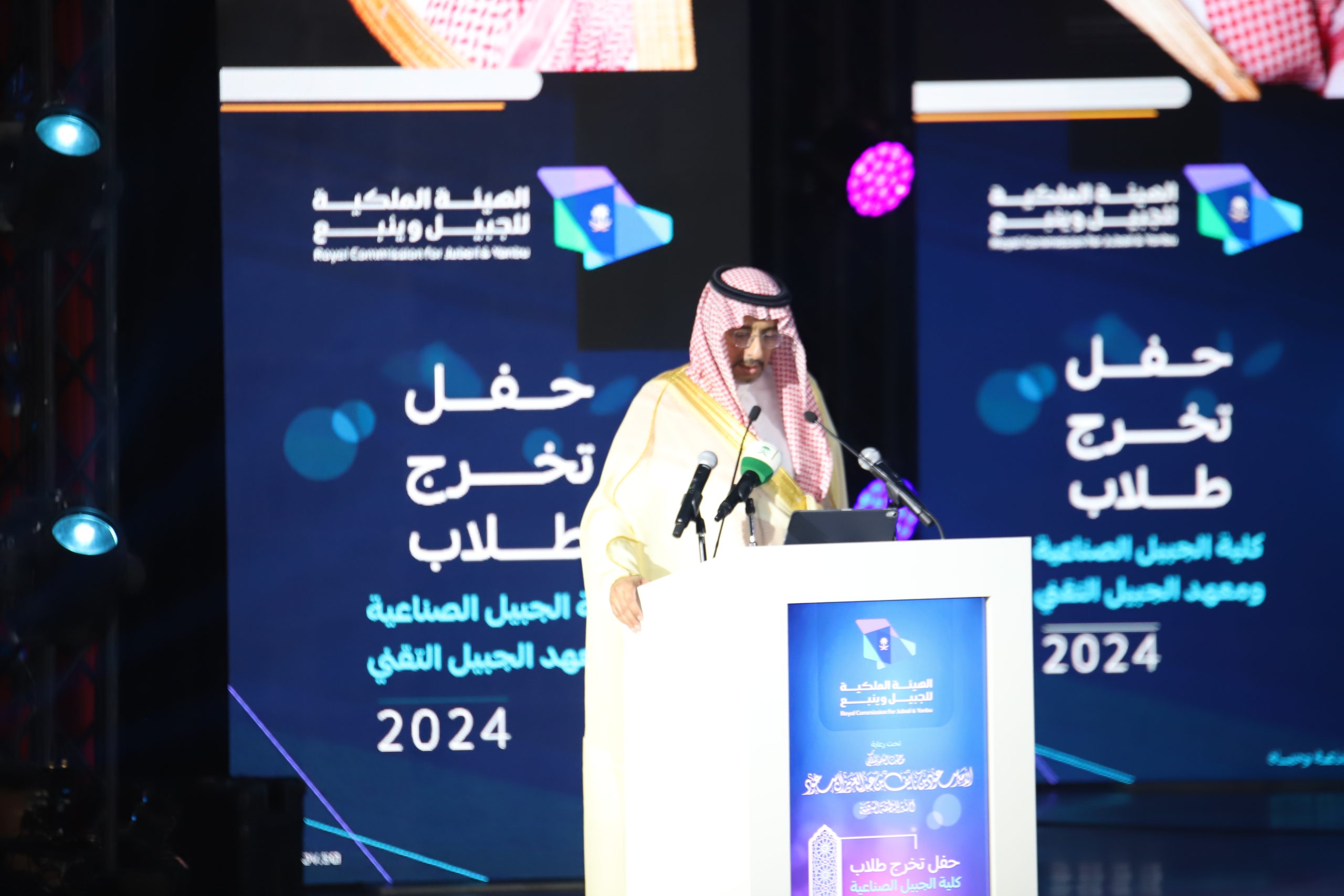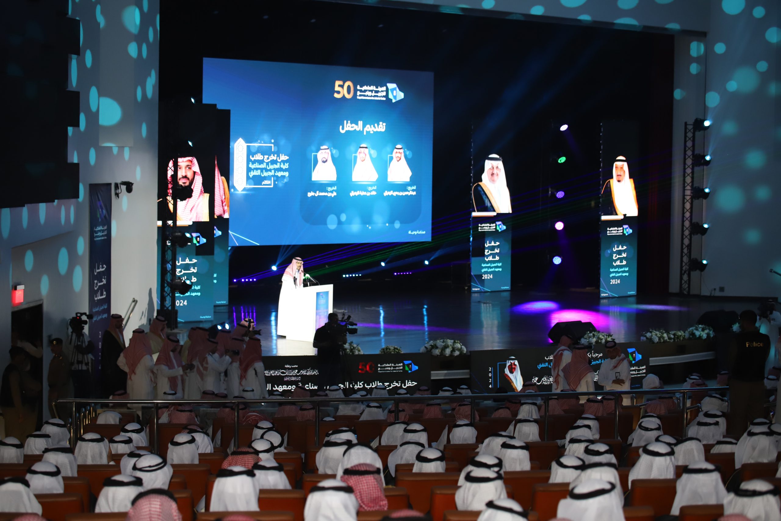ورعى صاحب السمو الملكي الأمير سعود بن نايف بن عبد العزيز أمير الشرقية مساء الأحد حفل تخرج طلاب كلية الجبيل الصناعية ومعهد الجبيل التقني 2024م والبالغ عددهم (2893) خريج بحضور معالي وزير الصناعة والثروة المعدنية رئيس مجلس إدارة الهيئة الملكية للجبيل وينبع الأستاذ بندر بن إبراهيم الخريف ومعالي رئيس الهيئة الملكية للجبيل وينبع المهندس خالد بن محمد السالم، بمسرح المدينة الجامعية بمدينة الجبيل الصناعية.